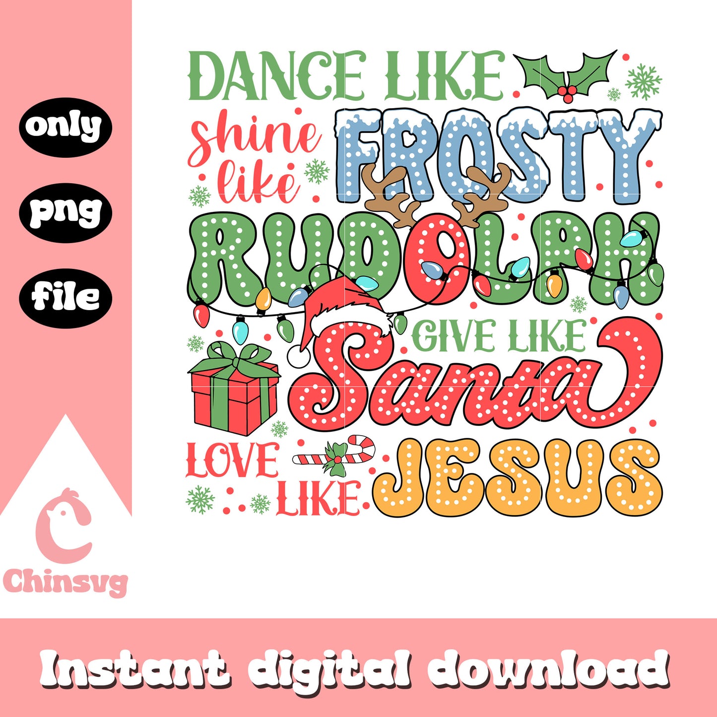 Dance like frosty shine like rudolph christmas quote png, christmas quotes png