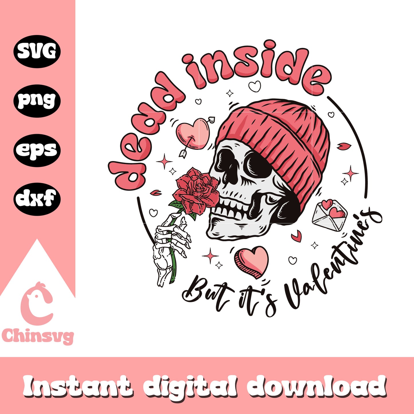 Dead inside but it's valentines design svg is a product of our Valentine collection. Whether you’re crafting personalized gifts, romantic cards, or decorating for a special day, this collection is filled with beautiful designs that capture the spirit of Valentine’s Day. Featuring hearts, roses, Cupid, love quotes, and more, these high-quality files will inspire your creativity and help you make something truly unforgettable for your loved ones.