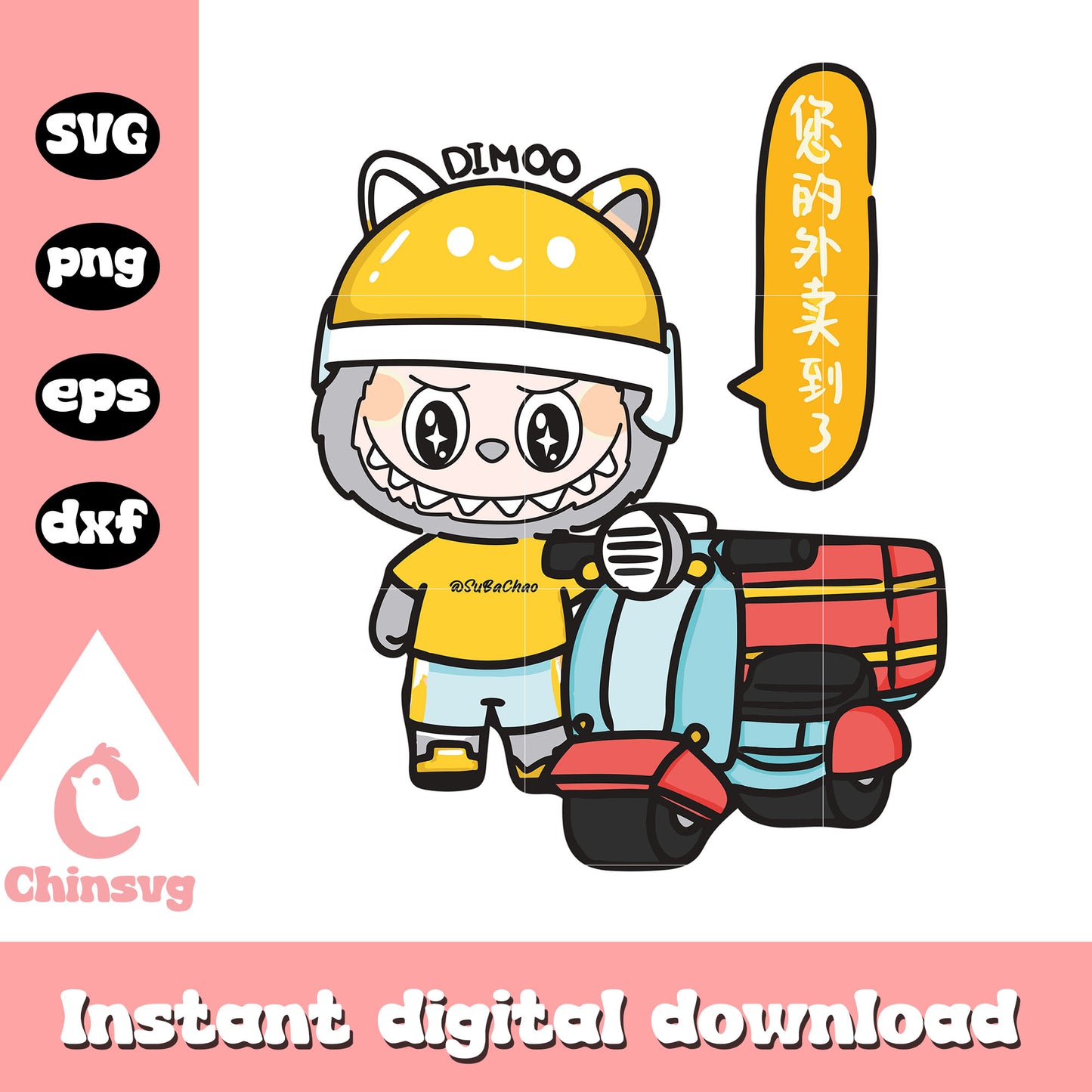 Delivery driver dimoo labubu drawing design svg, labubu cartoon svg