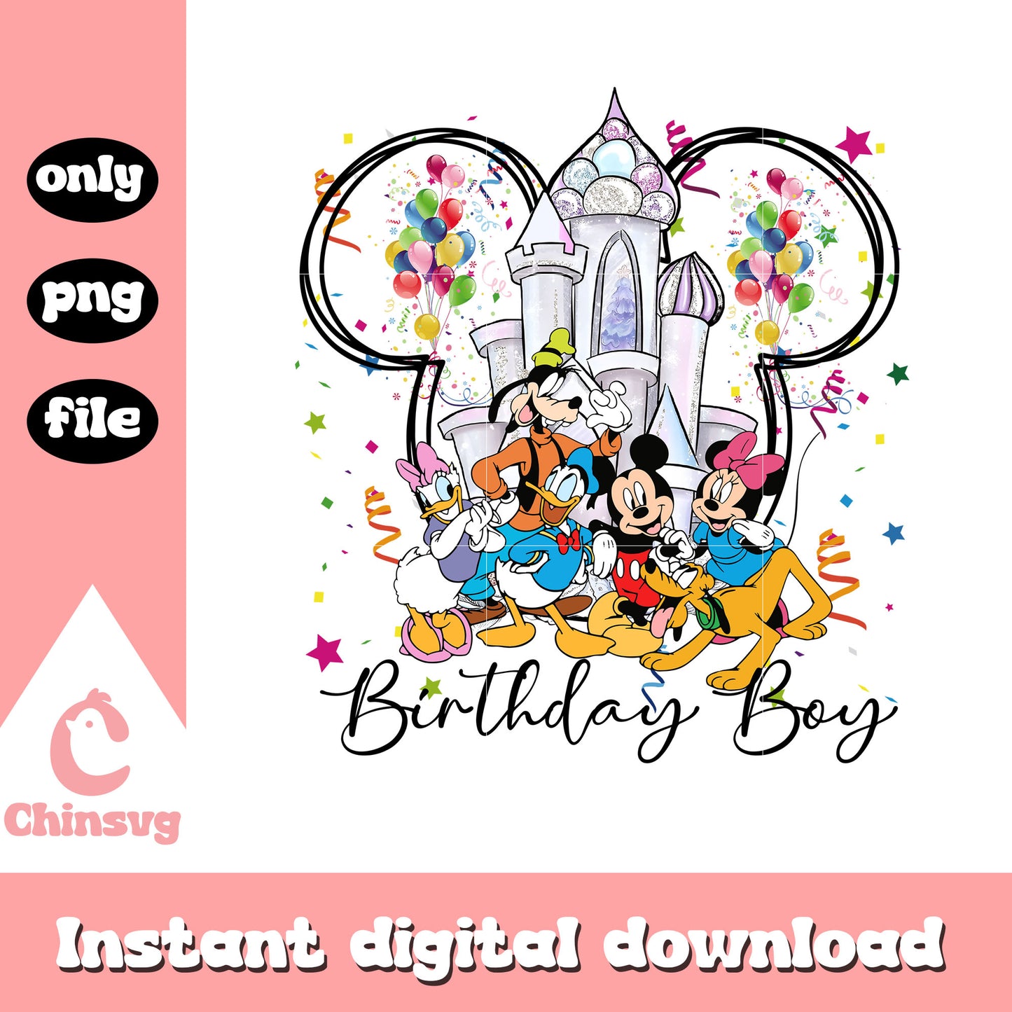 Disney castle mickey friends birthday boy png is a product of our Disney collection. Perfect for Disney fans of all ages, this collection captures the charm and nostalgia of your favorite characters and magical worlds. Featuring a range of beloved characters, castles, magical icons, and whimsical designs, these files are ideal for creating everything from custom apparel to party decorations and personalized gifts.