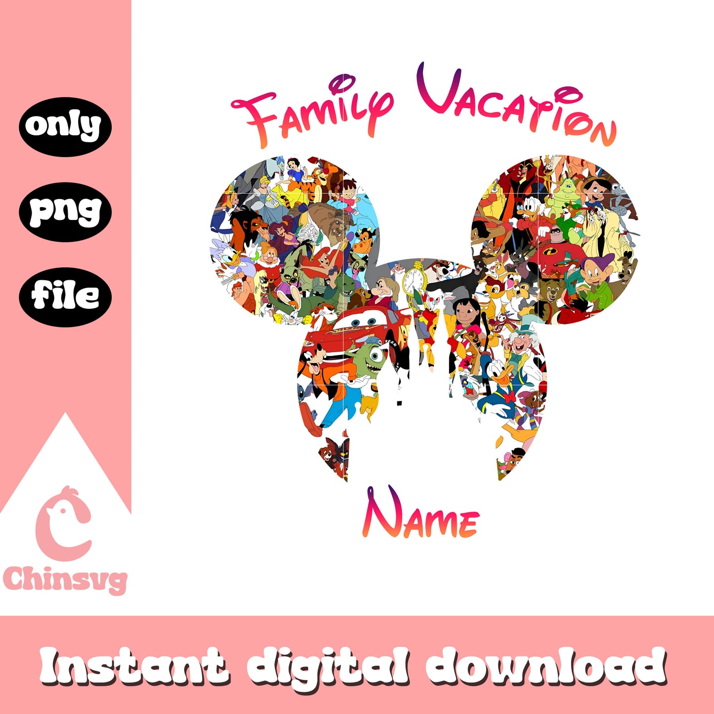 Disney casts family vacation name png is a product of our Disney collection. Perfect for Disney fans of all ages, this collection captures the charm and nostalgia of your favorite characters and magical worlds. Featuring a range of beloved characters, castles, magical icons, and whimsical designs, these files are ideal for creating everything from custom apparel to party decorations and personalized gifts.