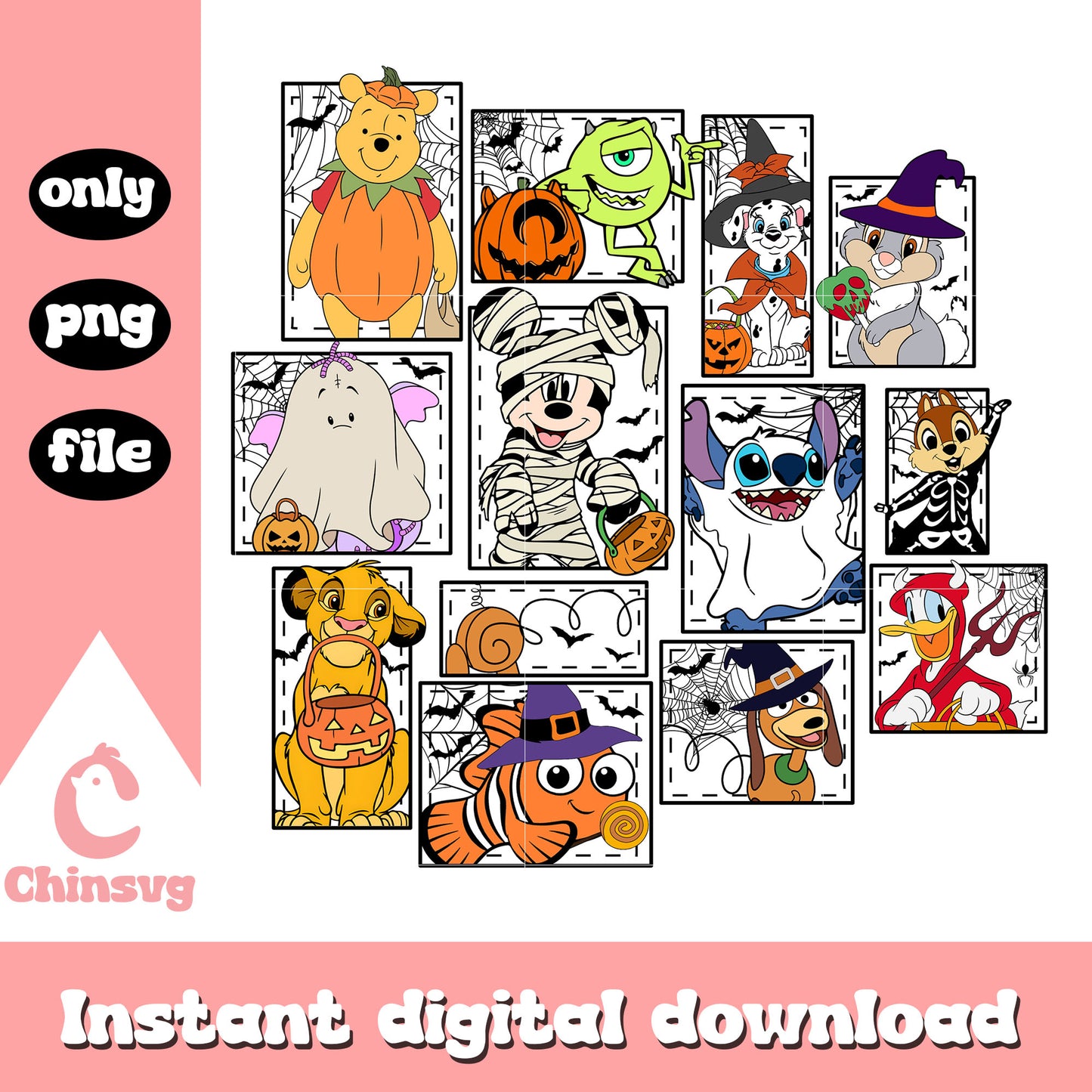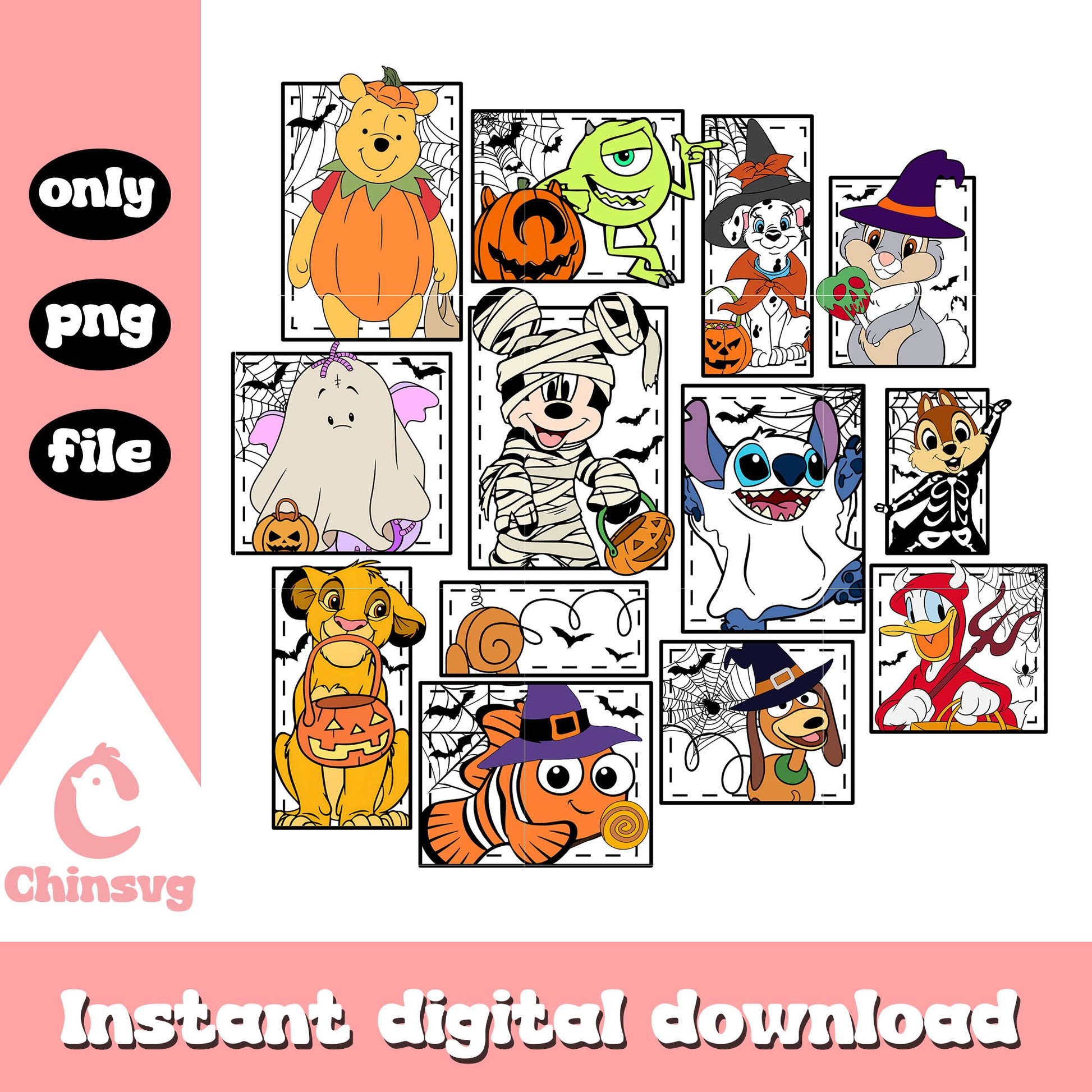 Disney character halloween costume png is a product of our Halloween collection. Whether you're crafting spooky decorations, designing party invitations, or creating unique apparel, this collection is packed with high-quality, detailed graphics that perfectly capture the spirit of Halloween. From pumpkins, ghosts, bats, to witches, skeletons, and more, this set offers endless possibilities for your creative ideas.