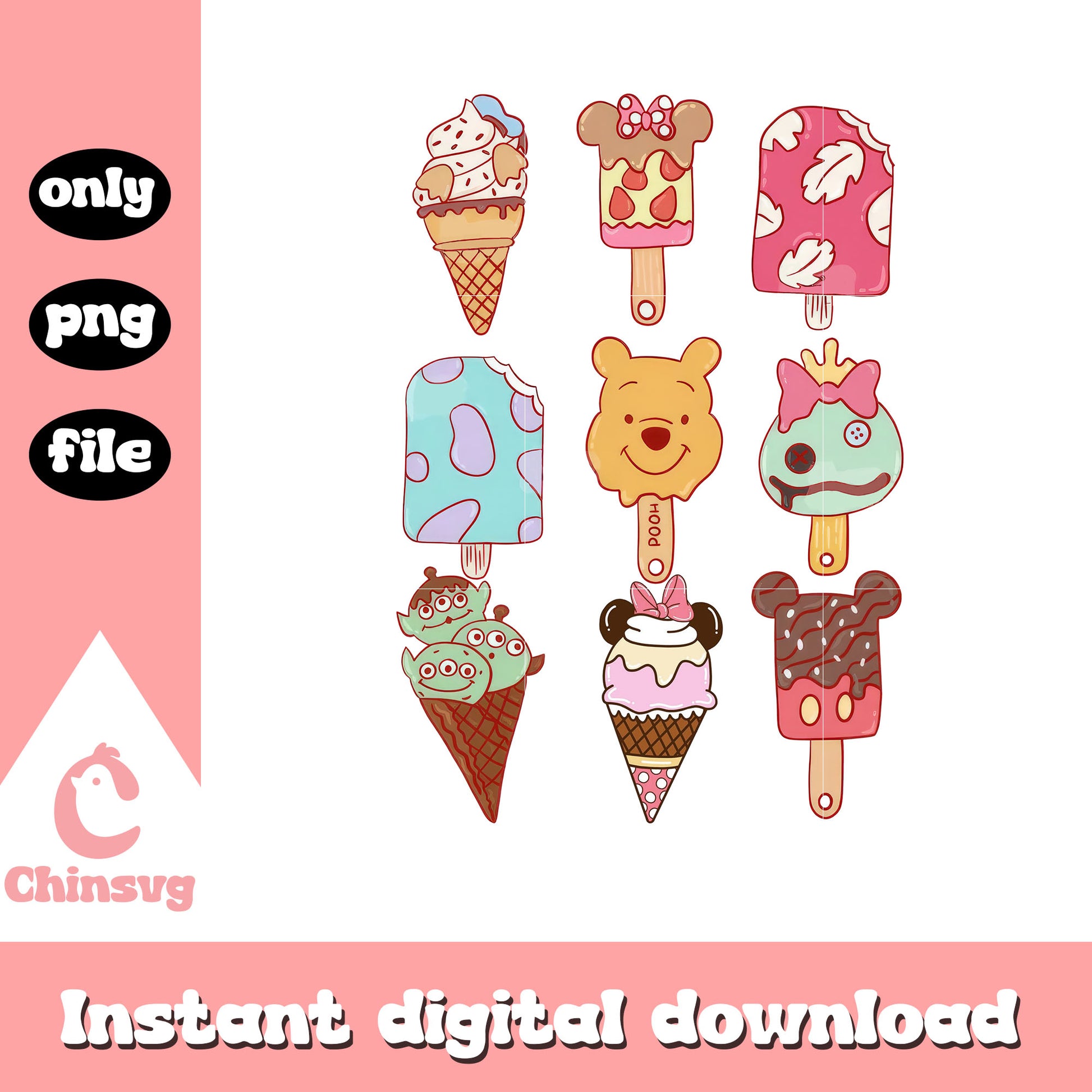 Disney icecream design png is a product of our Disney collection. Perfect for Disney fans of all ages, this collection captures the charm and nostalgia of your favorite characters and magical worlds. Featuring a range of beloved characters, castles, magical icons, and whimsical designs, these files are ideal for creating everything from custom apparel to party decorations and personalized gifts.