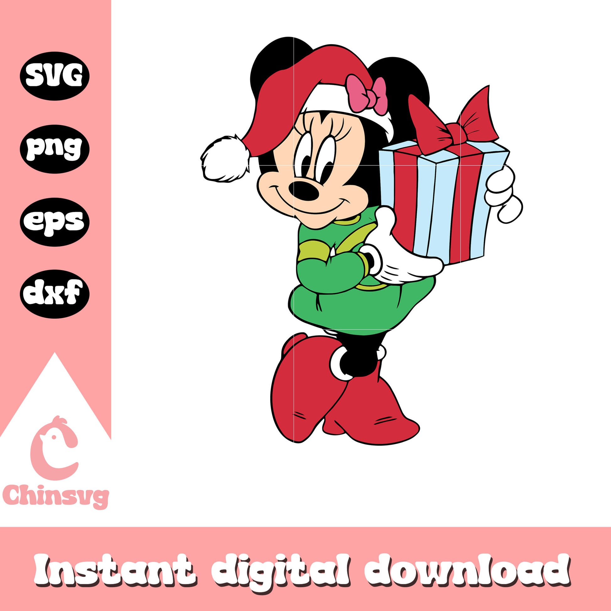 Disney minnie and christmas present svg, christmas minnie mouse svg