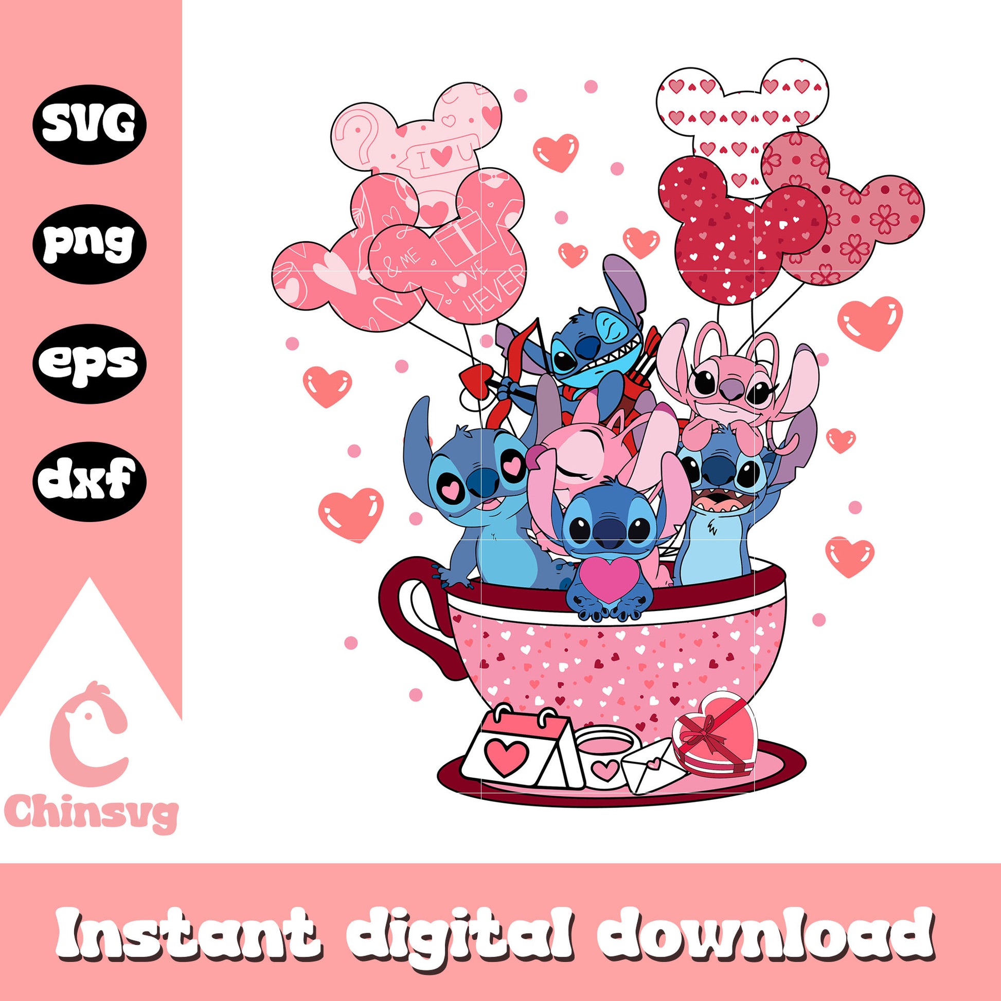 Disney stitch coffee cup balloon valentine svg, disney valentine svg