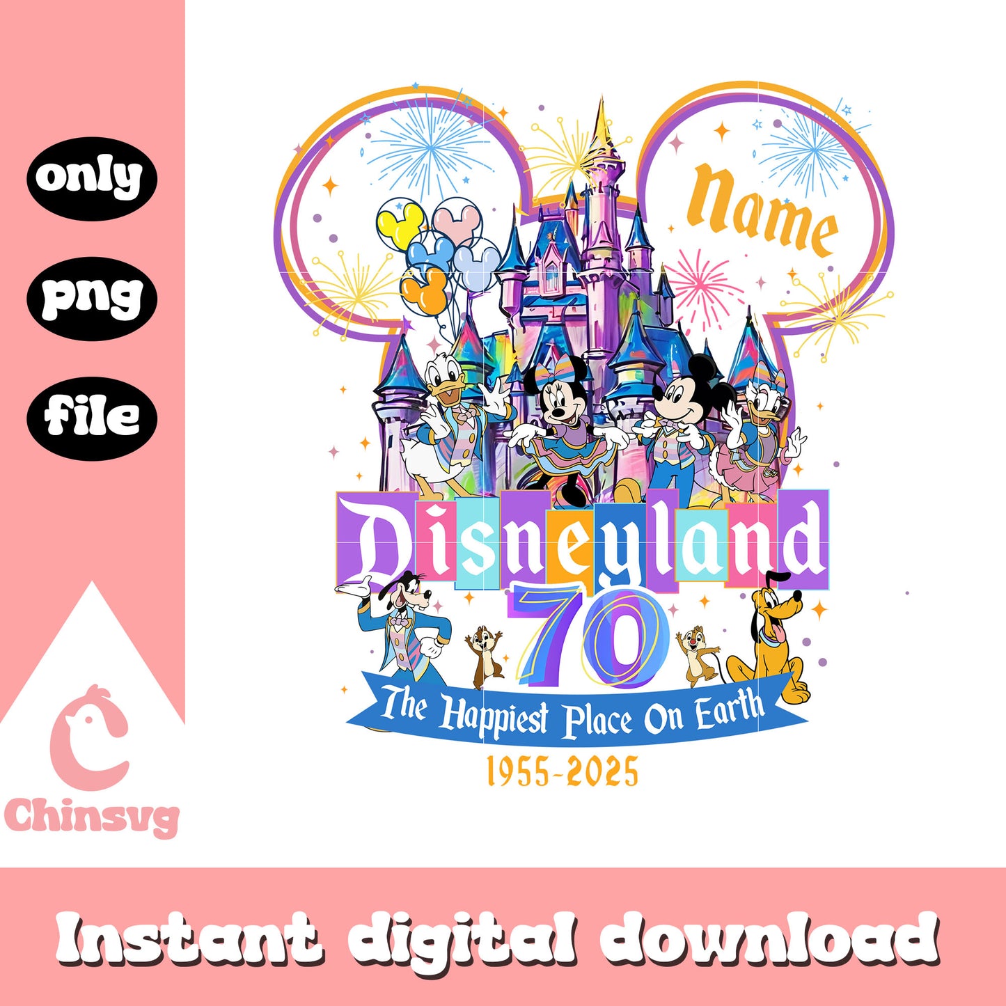 Disneyland castle the happiest place on earth png is a product of our Disney collection. Perfect for Disney fans of all ages, this collection captures the charm and nostalgia of your favorite characters and magical worlds. Featuring a range of beloved characters, castles, magical icons, and whimsical designs, these files are ideal for creating everything from custom apparel to party decorations and personalized gifts.