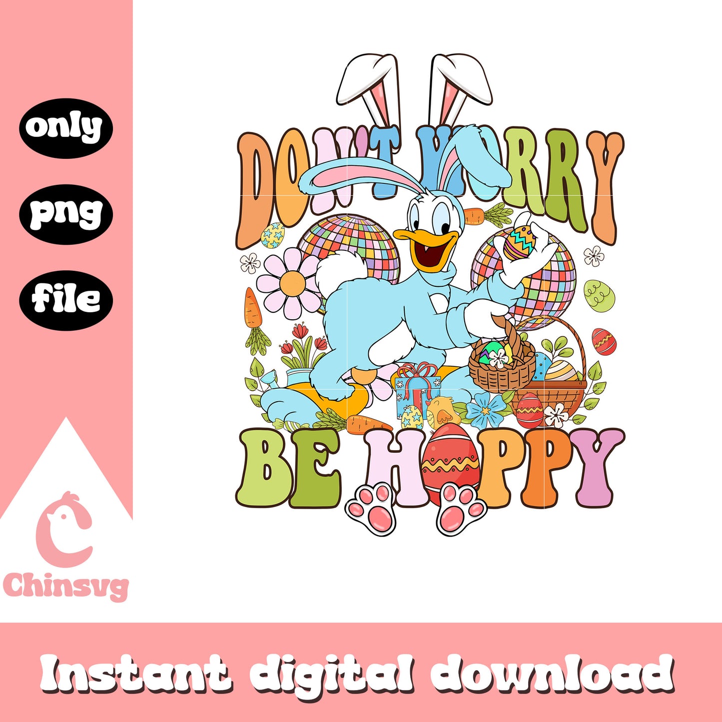 Donald duck be hoppy png is a product of our easter collection, filled with adorable and festive designs to make your creative projects shine! Featuring bunnies, Easter eggs, spring florals, and joyful quotes, this collection is perfect for crafting unique decorations, apparel, and gifts. Whether you’re preparing for an Easter egg hunt, decorating your home, or creating seasonal keepsakes, these high-quality designs are just what you need!