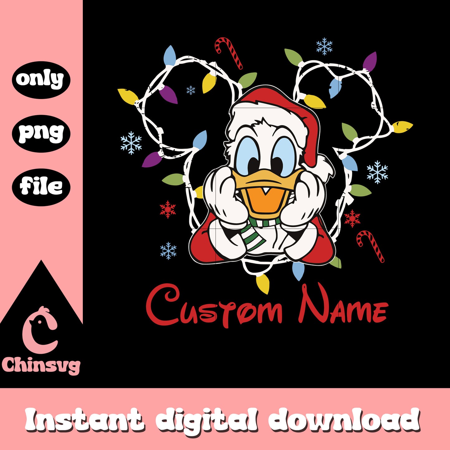 Donald duck custom name christmas lights png is a product of our christmas collection. Perfect for DIY enthusiasts, crafters, and designers, this collection offers a wide range of festive elements like Christmas trees, Santa Claus, snowflakes, ornaments, reindeer, and more. Whether you’re designing greeting cards, personalized gifts, or home decor, these high-quality designs will help you create something truly special this Christmas.