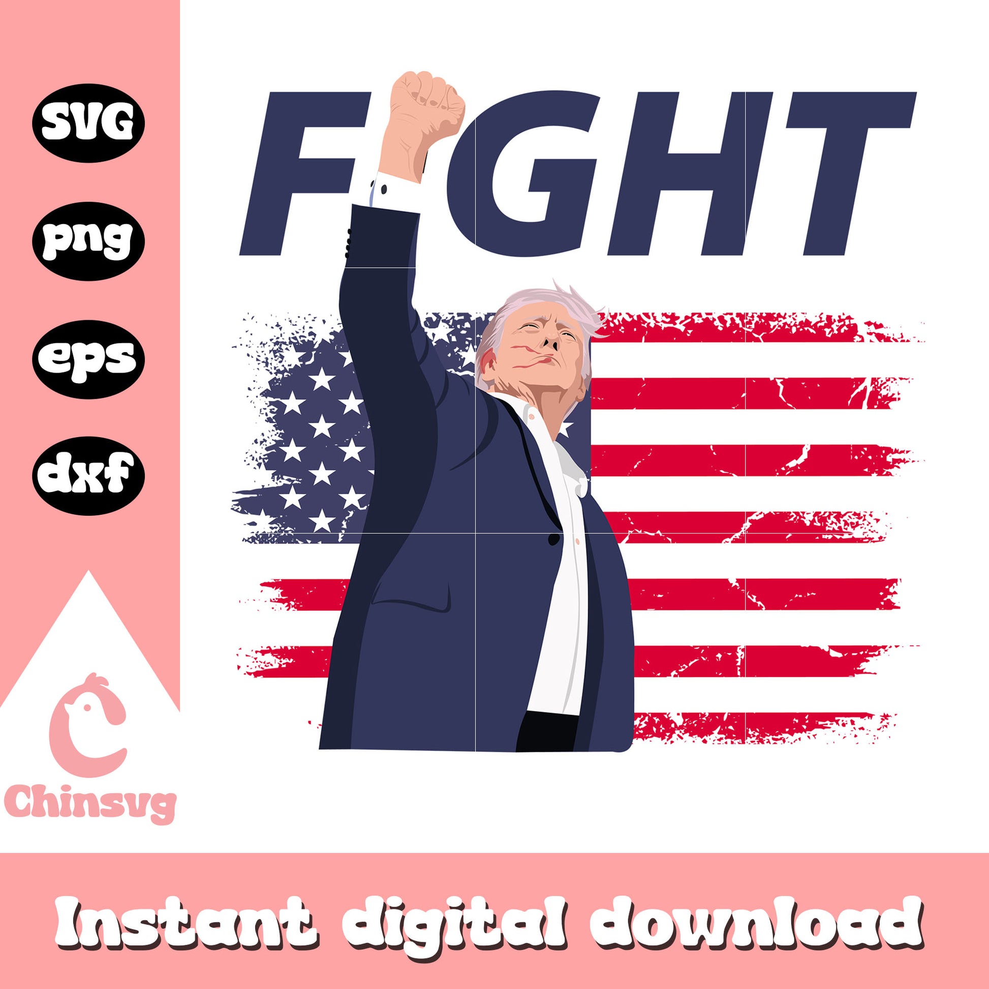 Donald trump fight with flag design svg is a product of our Trump collection. Designed for those who want to make a bold impact. Perfect for a range of projects, this collection includes iconic portraits, patriotic symbols, and popular slogans associated with the Trump era. Whether you're creating custom apparel, banners, stickers, or social media content, these high-quality designs offer a unique way to express your perspective.