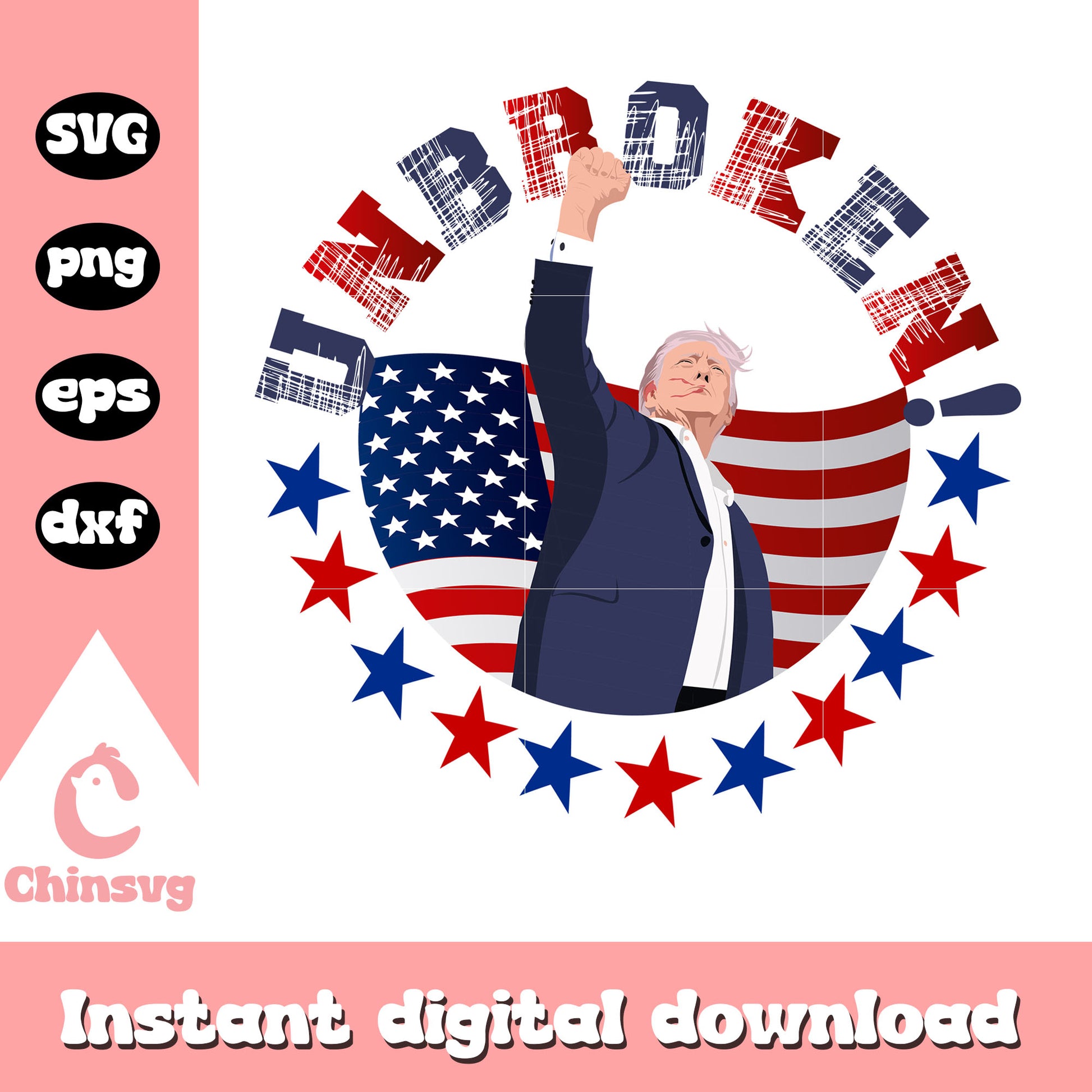 Donald trump unbroken logo design svg, trump 2024 flag svg