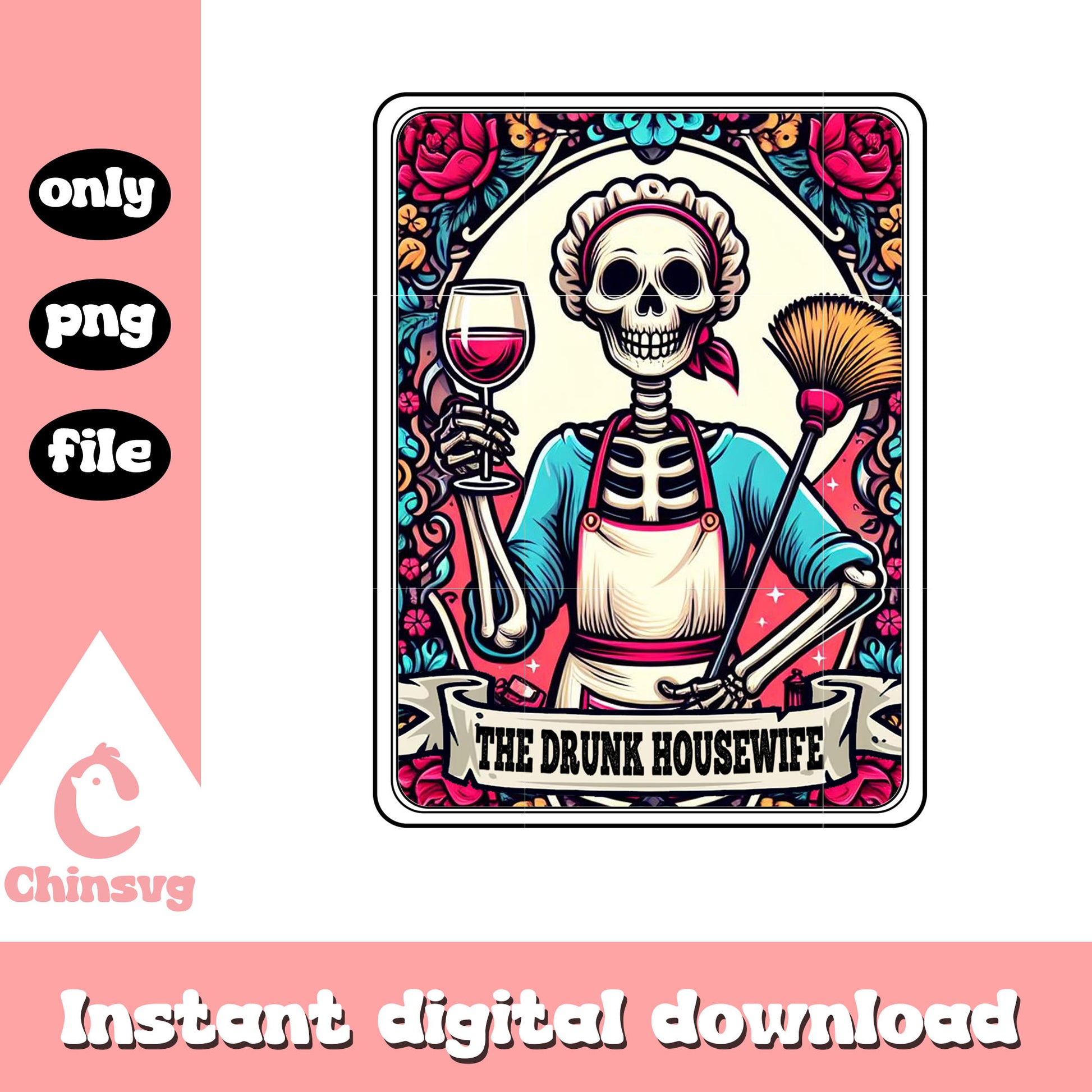 Drunk housewife tarot card png, human skeleton png, tarot cards png