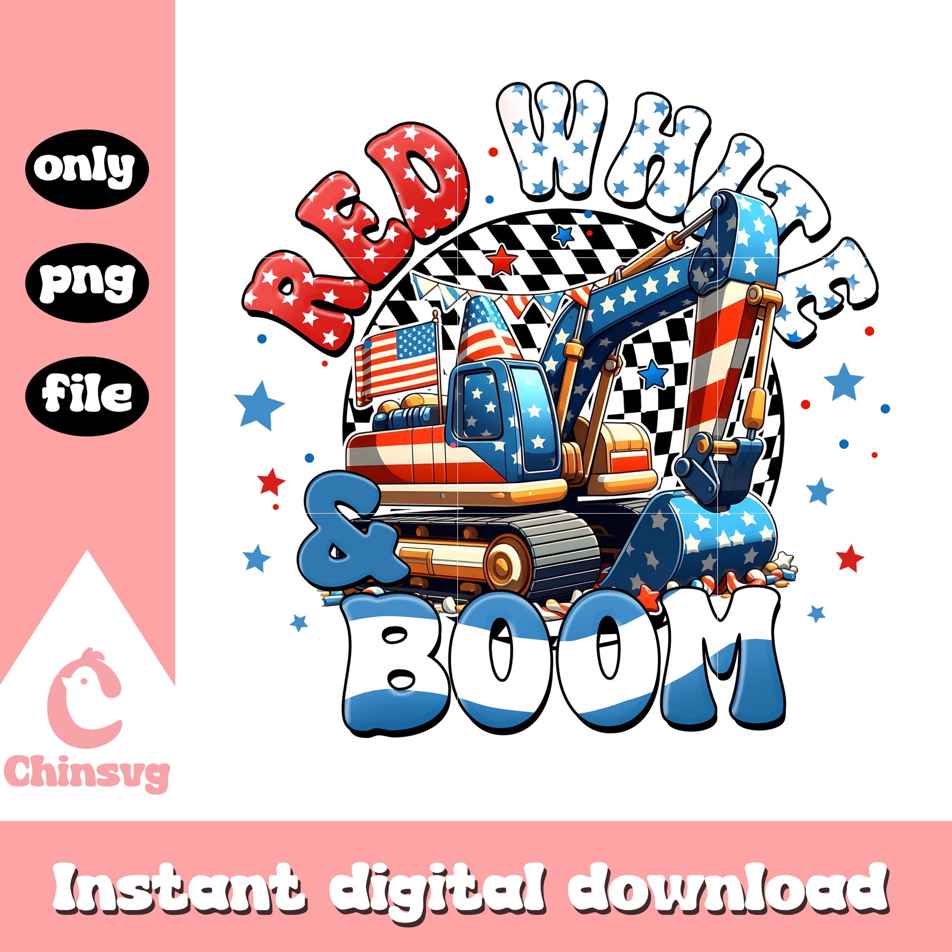 Excavator cars 4th of july png is a product of our 4th of July collection. Get ready to celebrate America’s Independence Day in style with our 4th of July SVG Collection! Packed with bold red, white, and blue designs, this collection features patriotic graphics, fun quotes, fireworks, flags, and more. Perfect for DIY apparel, party decorations, and personalized gifts that light up the holiday spirit!