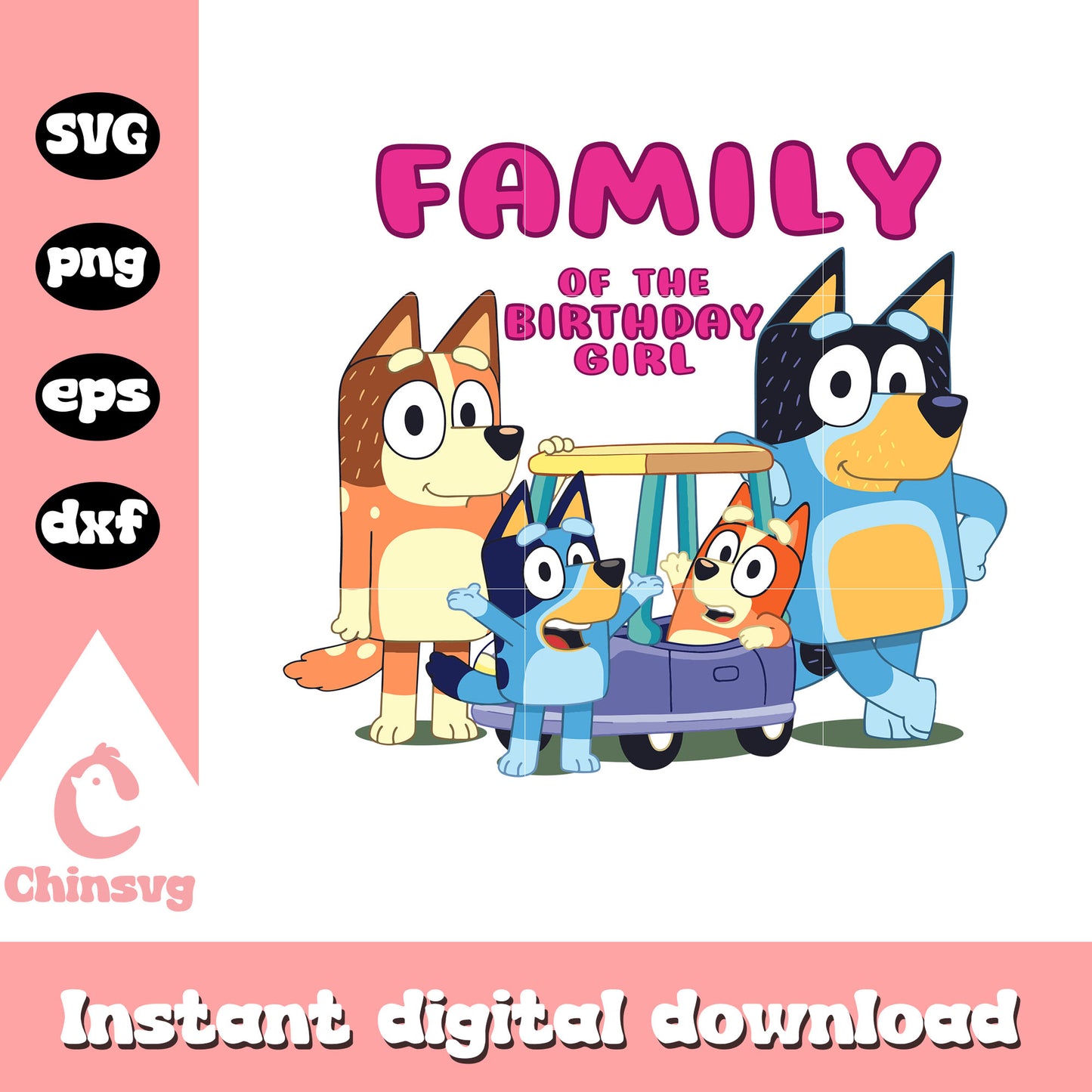 Family of the birthday girl design svg is a product of our Bluey collection. Packed with vibrant, fun, and creative illustrations, this collection features a wide range of adorable characters, colorful icons, and lively scenes that will brighten up any project. Whether you’re designing for kids' parties, custom apparel, or digital art, these high-quality files are perfect for unleashing your creativity.