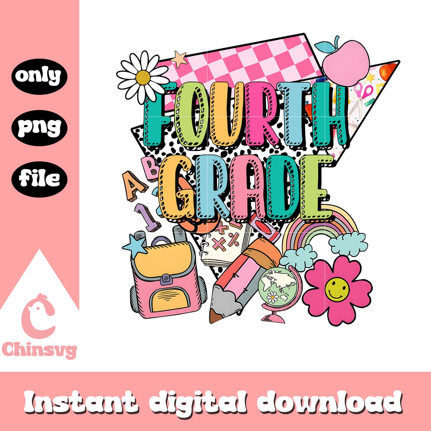 Fourth grade back to school clipart png is a product of our School collection. Celebrate the spirit of learning with our School SVG Collection! Perfect for teachers, students, and parents, this collection features education-themed designs, from playful quotes and school supplies to classroom graphics and seasonal school moments. Whether you're personalizing a teacher gift or decorating for back-to-school, these high-quality files bring creativity to every classroom and craft project!