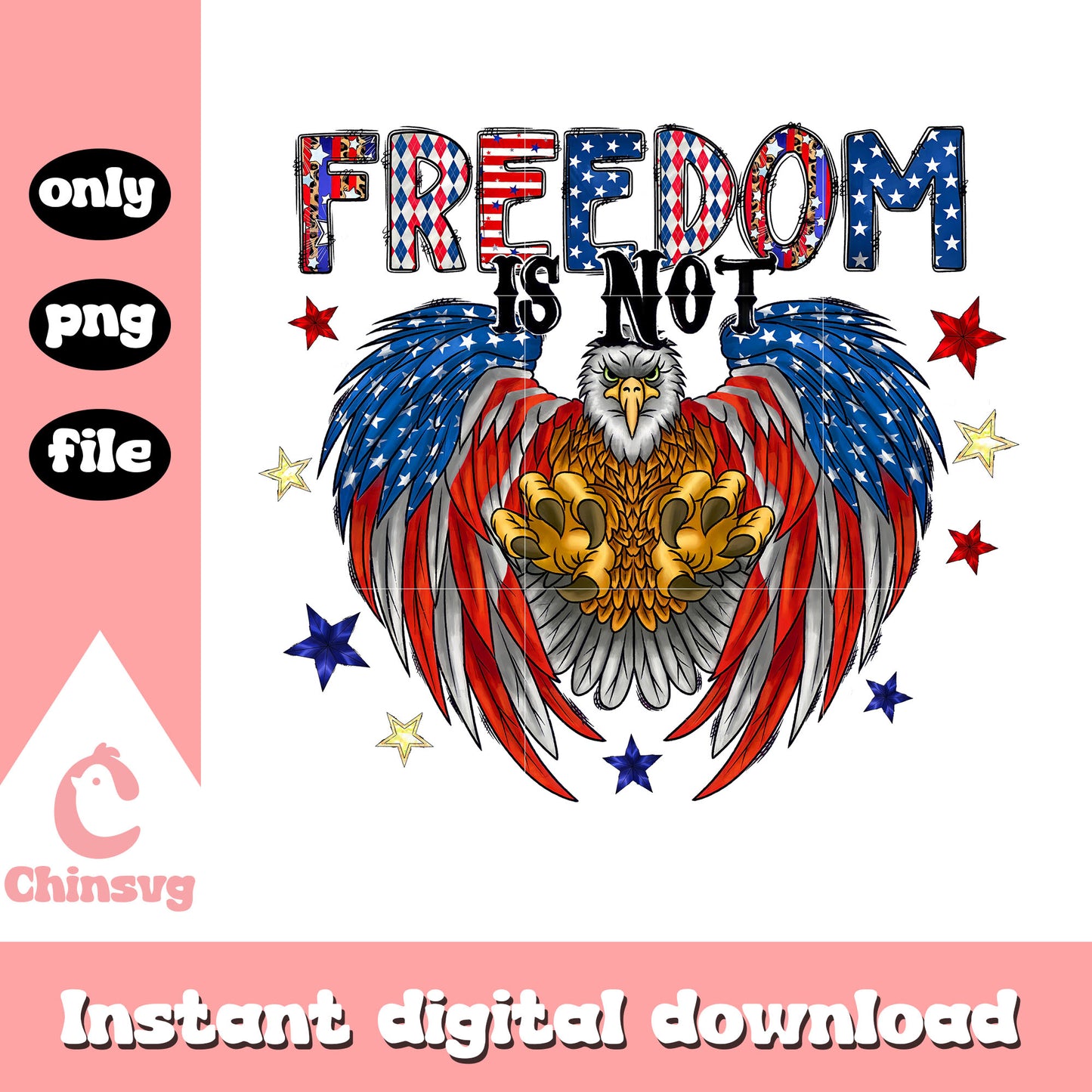 Freedom is not america eagle png is a product of our 4th of July collection. Get ready to celebrate America’s Independence Day in style with our 4th of July SVG Collection! Packed with bold red, white, and blue designs, this collection features patriotic graphics, fun quotes, fireworks, flags, and more. Perfect for DIY apparel, party decorations, and personalized gifts that light up the holiday spirit!