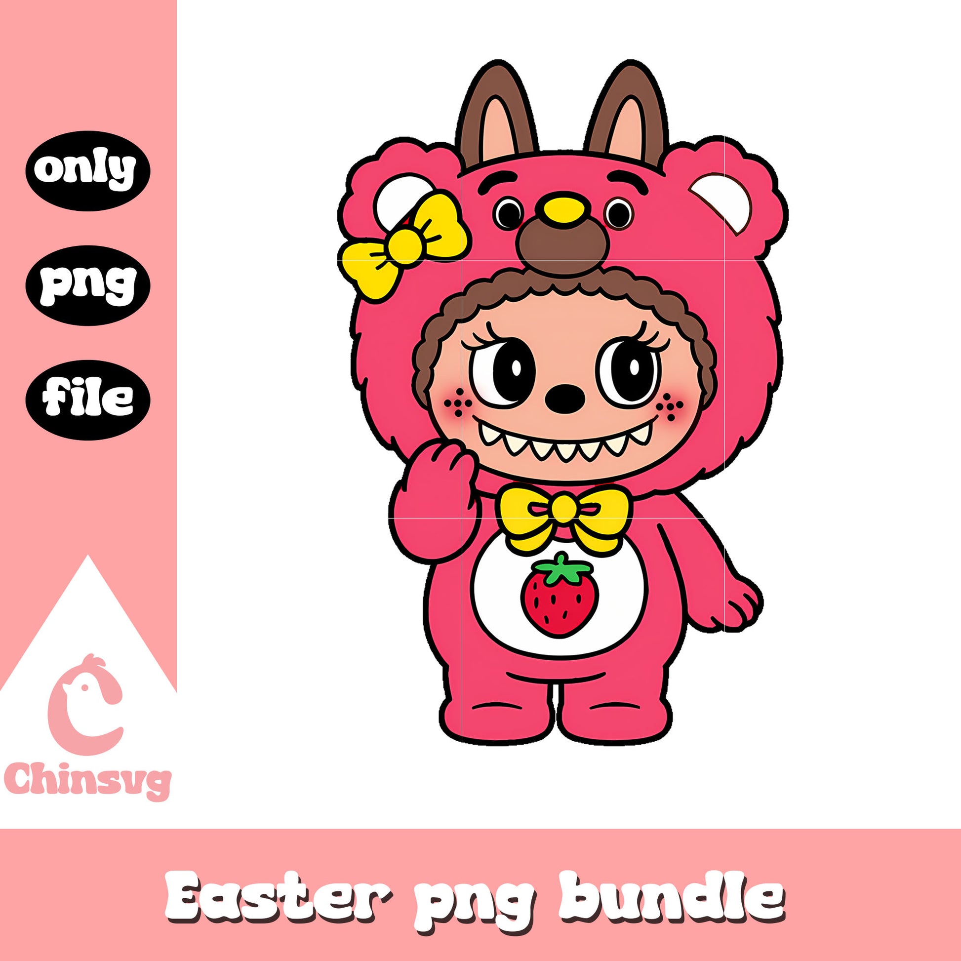 Fuchsia pink strawberry bear labubu cute doll png, labubu pop mart png