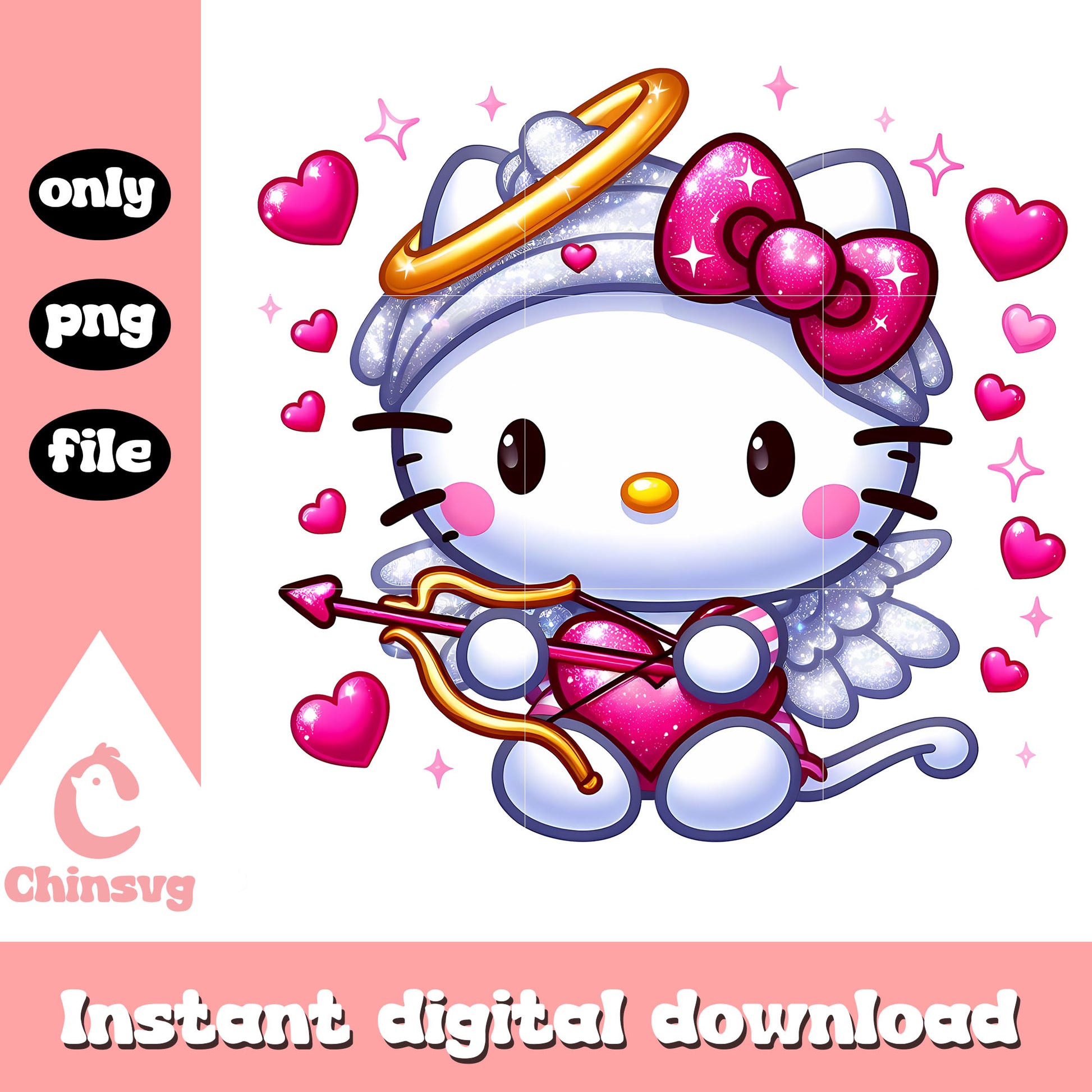 Glitter cupid kitty on valentine day png is a product of our hello kitty collection. Featuring the beloved character and her charming world, this collection is perfect for fans, crafters, and designers of all ages. Whether you're creating party decorations, custom gifts, or digital artwork, these high-quality designs will make every project extra cute and memorable.