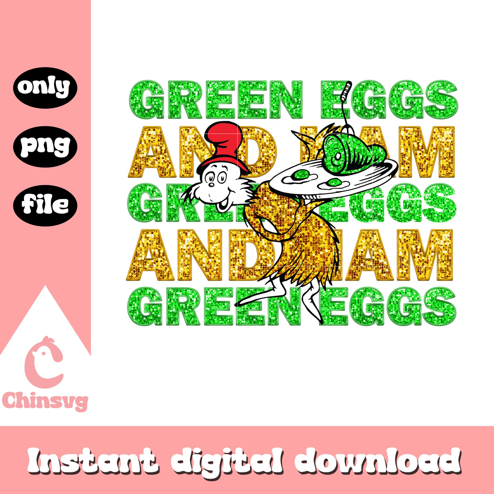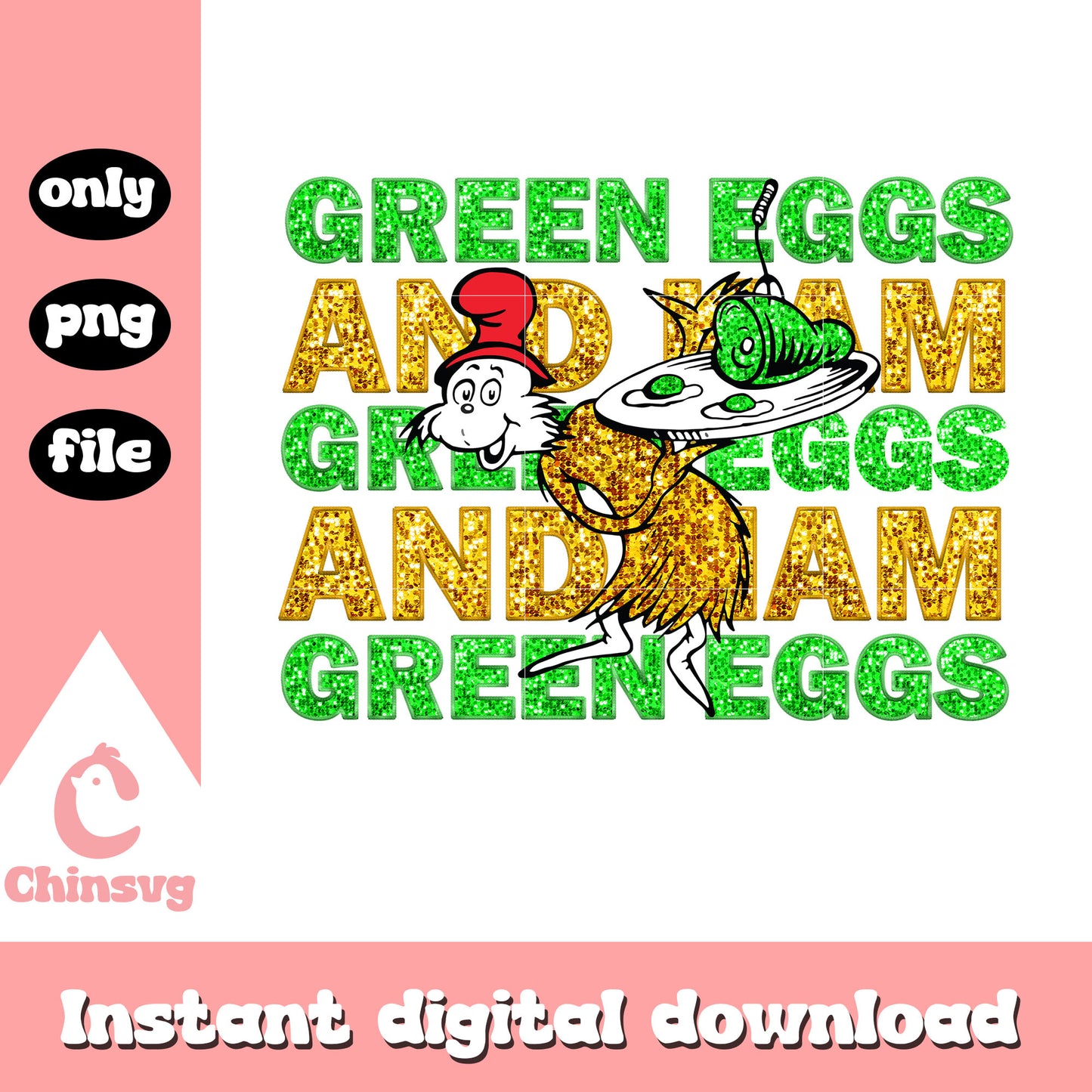 Glitter green eggs and ham png, dr seuss png, cartoon png
