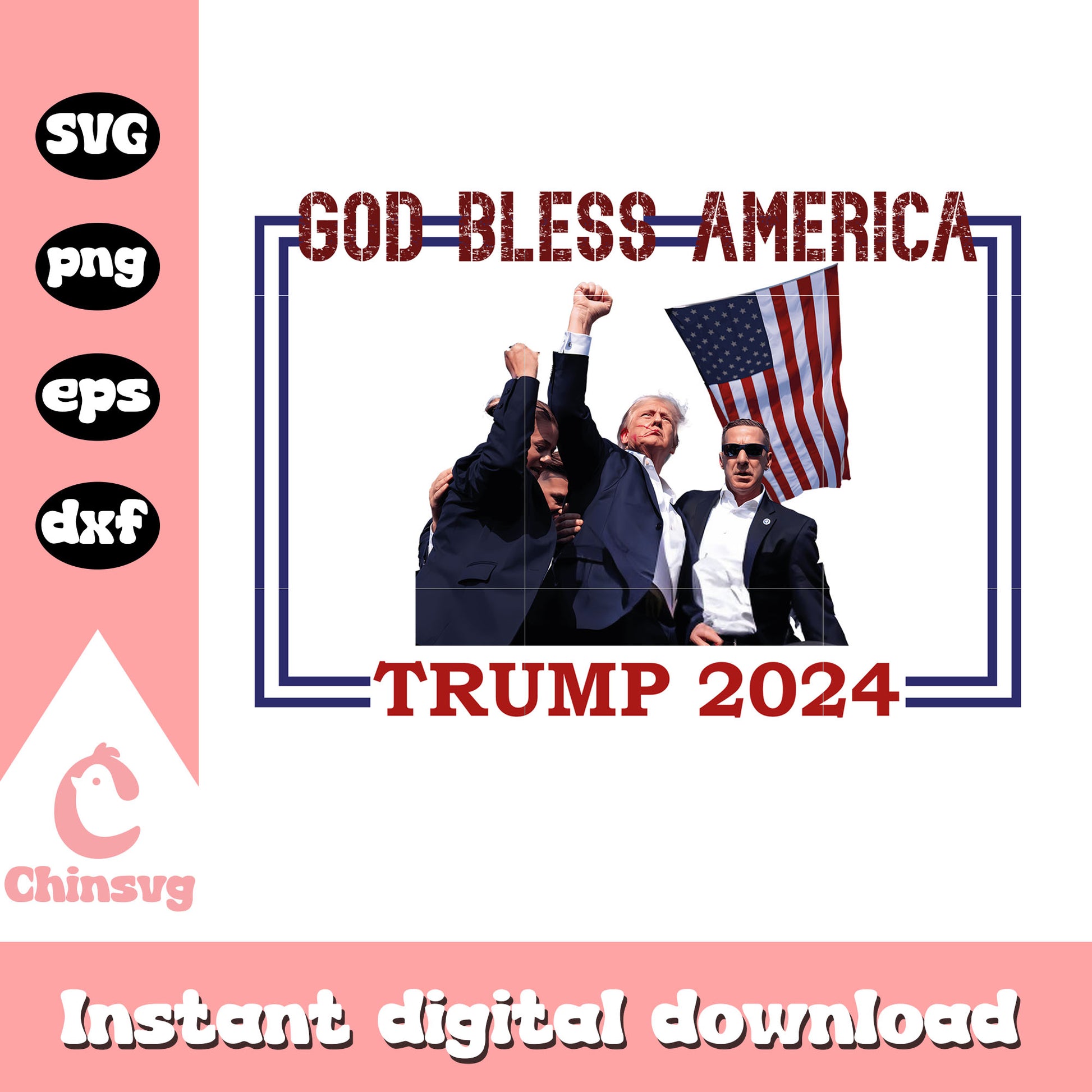 God bless america trump 2024 design svg is a product of our Trump collection. Designed for those who want to make a bold impact. Perfect for a range of projects, this collection includes iconic portraits, patriotic symbols, and popular slogans associated with the Trump era. Whether you're creating custom apparel, banners, stickers, or social media content, these high-quality designs offer a unique way to express your perspective.