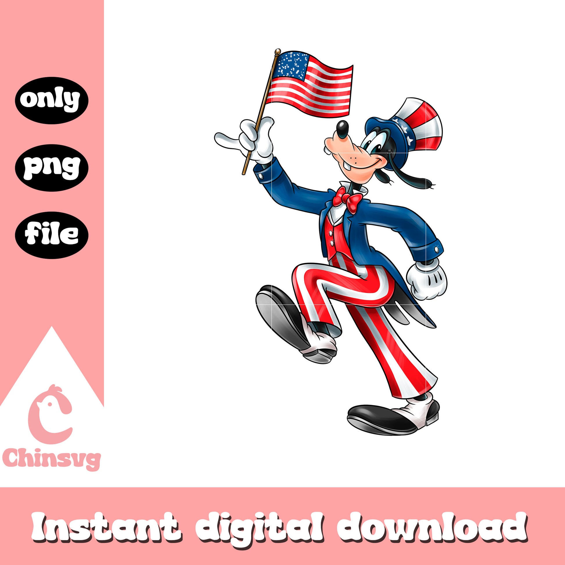 Goofy disney dog america flag png is a product of our 4th of July collection. Get ready to celebrate America’s Independence Day in style with our 4th of July SVG Collection! Packed with bold red, white, and blue designs, this collection features patriotic graphics, fun quotes, fireworks, flags, and more. Perfect for DIY apparel, party decorations, and personalized gifts that light up the holiday spirit!