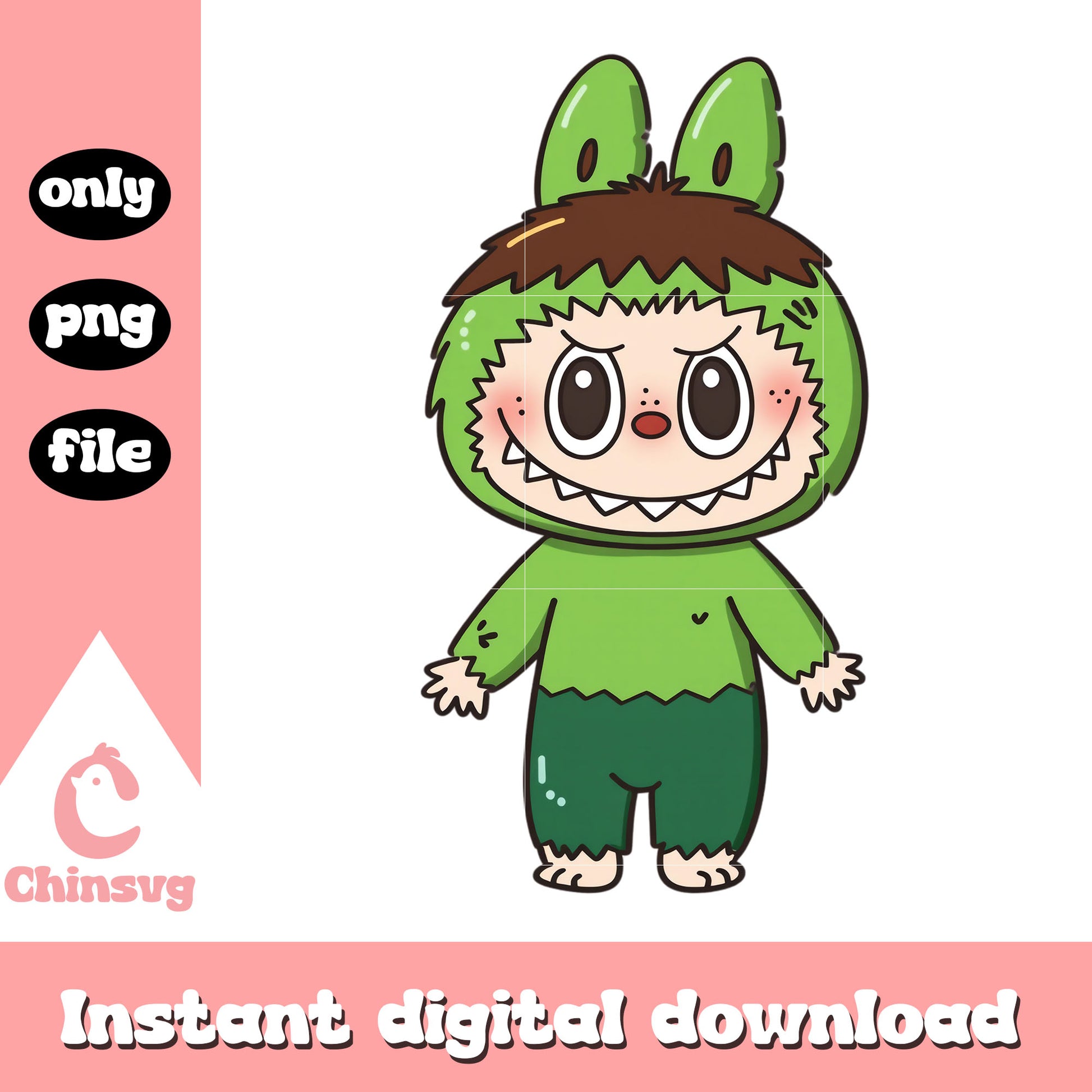 Green labubu costume clothes design png is a product of our Labubu collection. Dive into the magical world of Labubu with our whimsical Labubu SVG Collection! Inspired by the beloved mischievous character from the POP MART universe, this collection is filled with playful poses, expressive faces, and cute yet edgy vibes. Perfect for fans, collectors, and crafters looking to add a touch of artistic charm and character to their projects.
