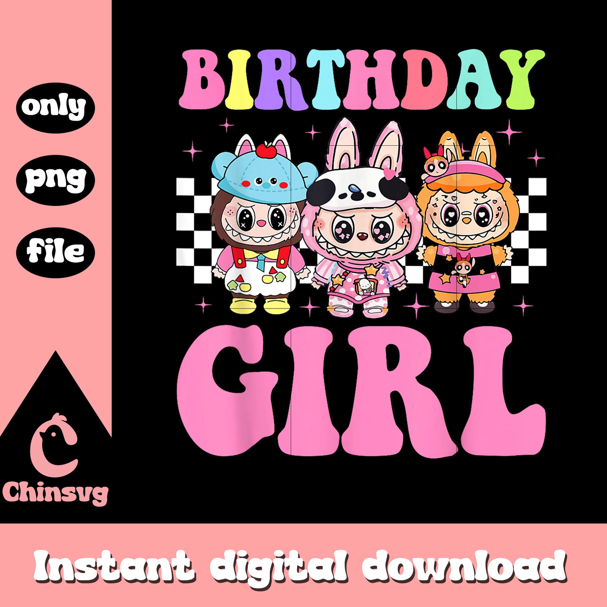 Groovy birthday girl labubu dolls design png, happy birthday png