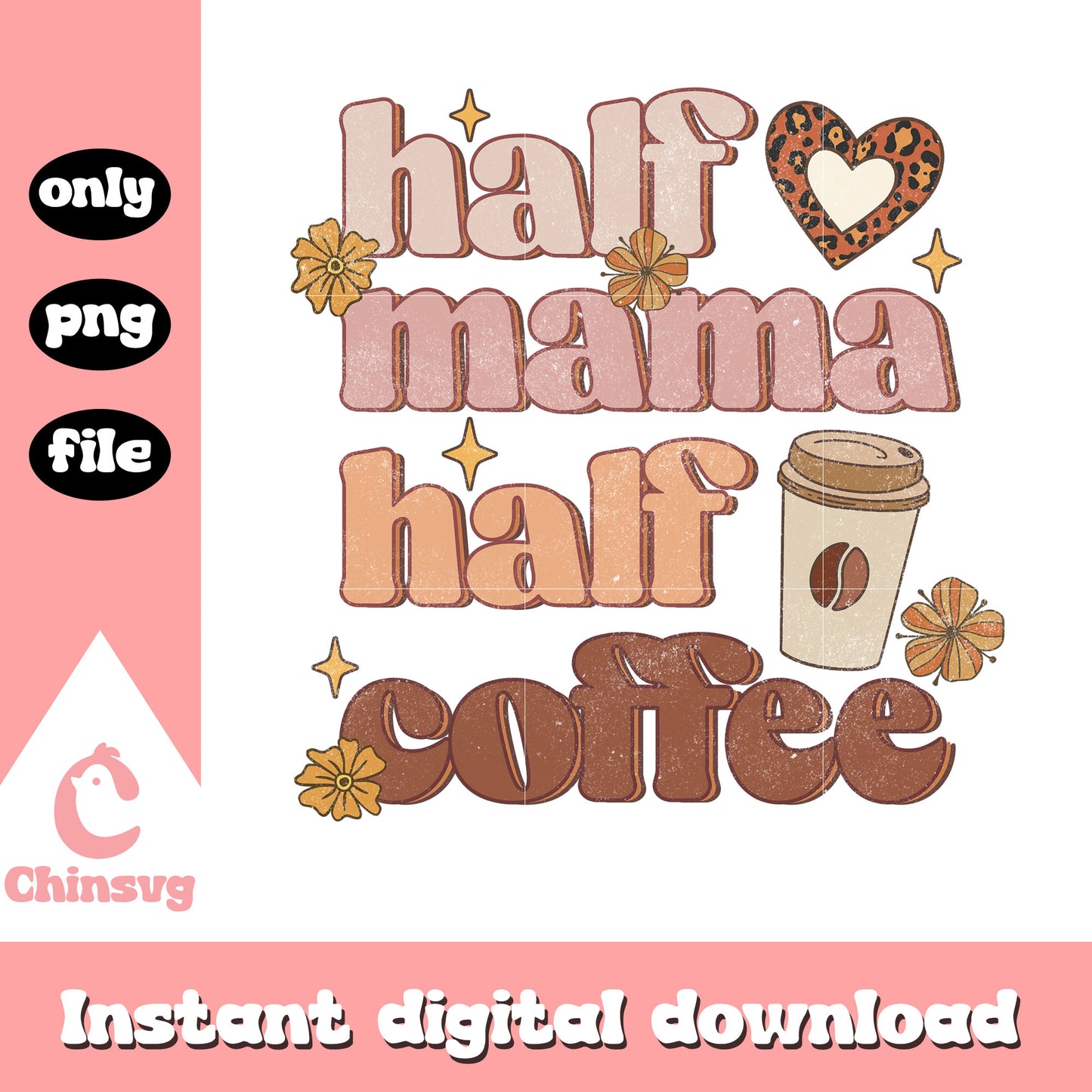 Half mama half coffee png is a product of our Mother's Day Svg collection. Featuring heartfelt quotes, floral designs, loving messages, and elegant typography, this collection is perfect for creating meaningful and personalized gifts. Whether you’re crafting t-shirts, mugs, greeting cards, or home decor, these high-quality designs will help make Mother’s Day extra special.
