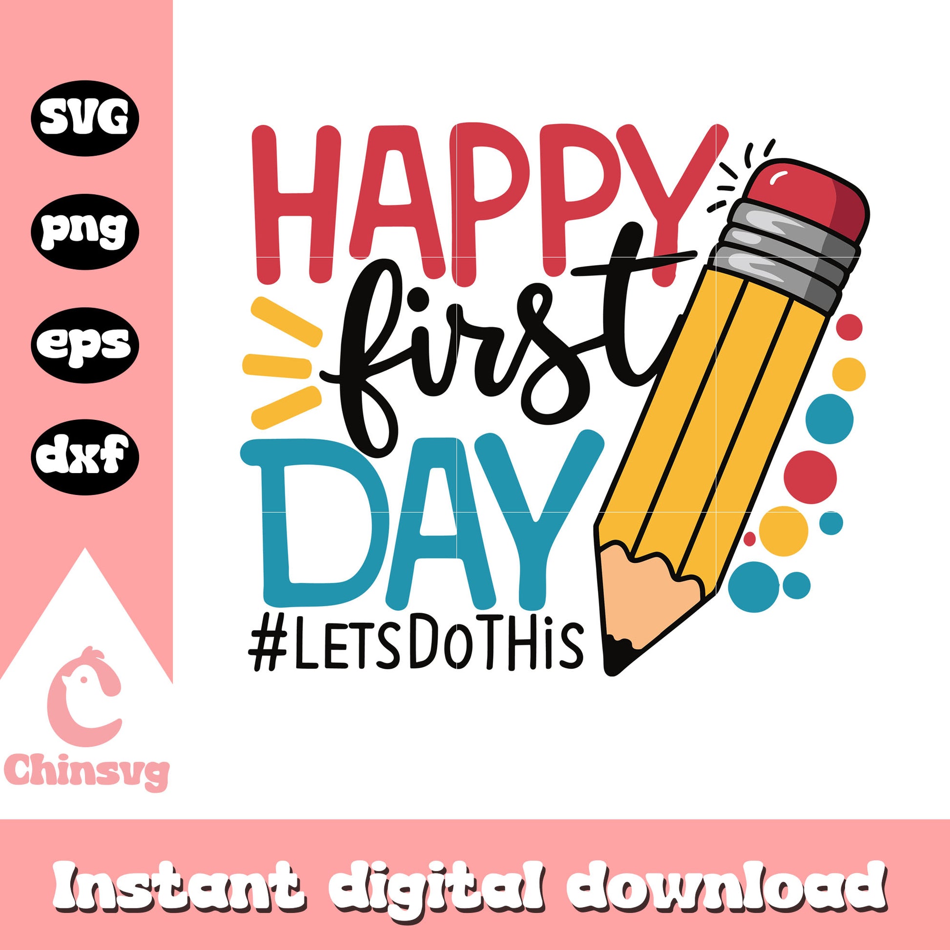 Happy first day back to school design svg is a product of our School collection. Celebrate the spirit of learning with our School SVG Collection! Perfect for teachers, students, and parents, this collection features education-themed designs, from playful quotes and school supplies to classroom graphics and seasonal school moments. Whether you're personalizing a teacher gift or decorating for back-to-school, these high-quality files bring creativity to every classroom and craft project!