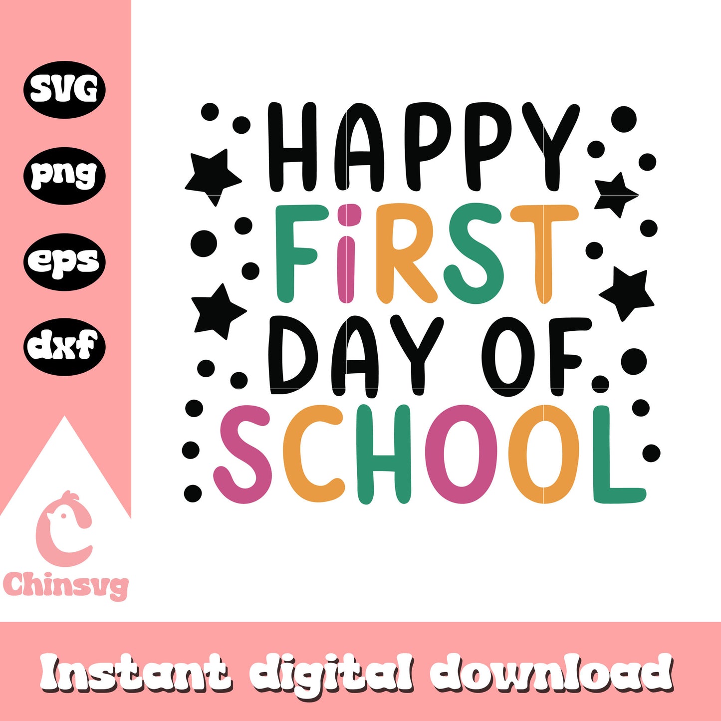 Happy first day of school svg is a product of our School collection. Celebrate the spirit of learning with our School SVG Collection! Perfect for teachers, students, and parents, this collection features education-themed designs, from playful quotes and school supplies to classroom graphics and seasonal school moments. Whether you're personalizing a teacher gift or decorating for back-to-school, these high-quality files bring creativity to every classroom and craft project!