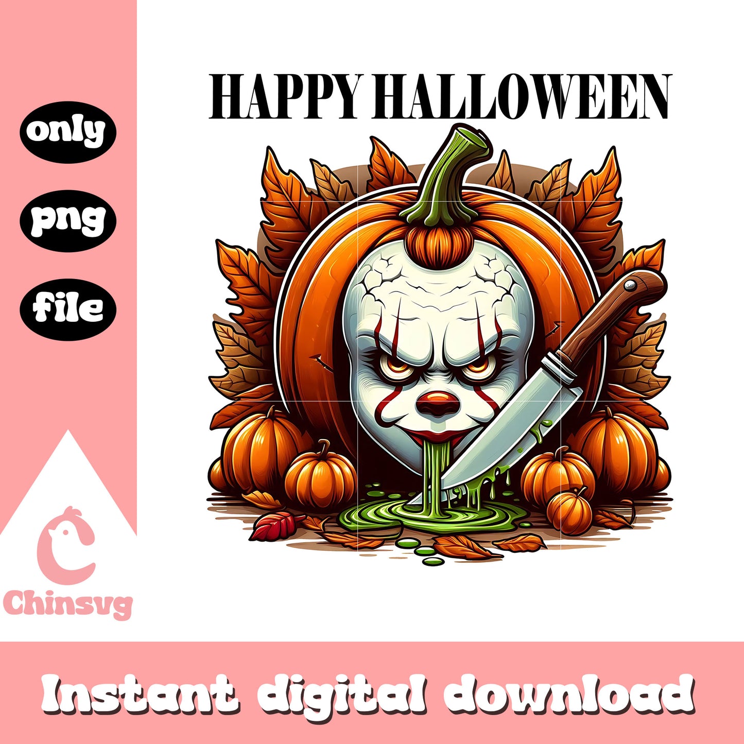 Happy halloween pennywise face pumpkin png, pennywise halloween png