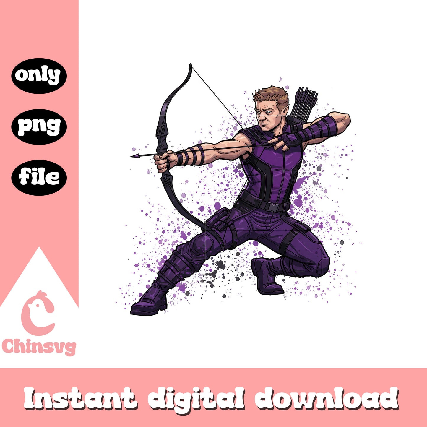 Hawkeye posing splatter effect design png is a product of our Avengers collection. Featuring your favorite Marvel superheroes like Iron Man, Captain America, Thor, Hulk, Black Widow, and more, this collection is perfect for fans, party planners, and creators who want to add heroic flair to their designs. Whether you're crafting for kids or grown-up Marvel lovers, this set brings action and excitement to every project.