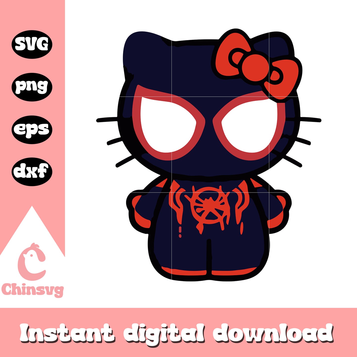 Hello kitty spiderman black svg is a product of our hello kitty collection. Featuring the beloved character and her charming world, this collection is perfect for fans, crafters, and designers of all ages. Whether you're creating party decorations, custom gifts, or digital artwork, these high-quality designs will make every project extra cute and memorable.
