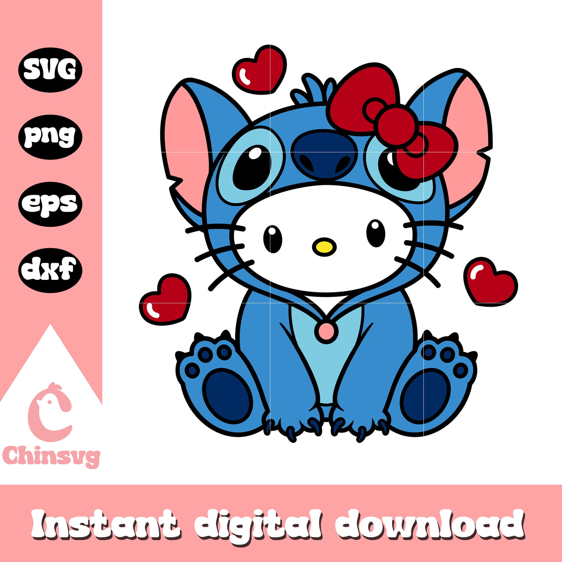 Hello kitty stitch love svg, hello kitty svg, hello kitty valentines svg