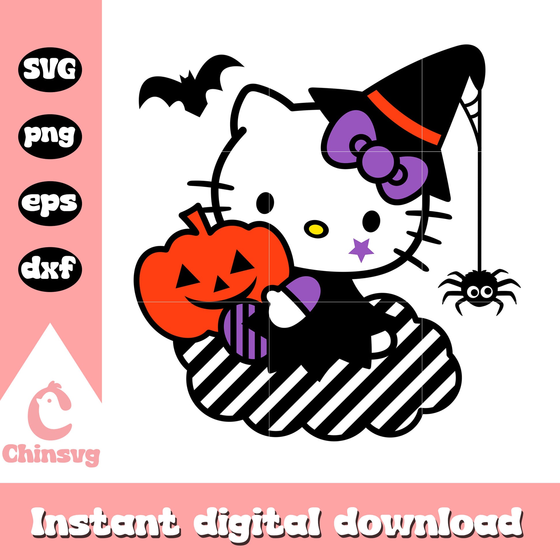 Hello kitty witch pumpkin svg, halloween hello kitty svg