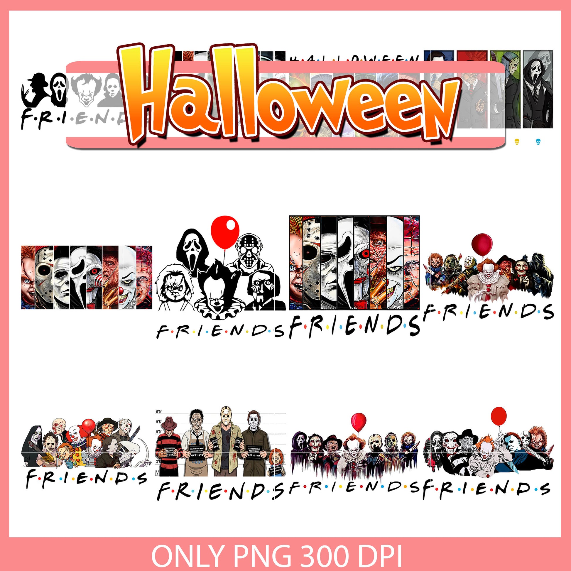 Horror characters face friends bundle png is a product of our Halloween collection. Whether you're crafting spooky decorations, designing party invitations, or creating unique apparel, this collection is packed with high-quality, detailed graphics that perfectly capture the spirit of Halloween. From pumpkins, ghosts, bats, to witches, skeletons, and more, this set offers endless possibilities for your creative ideas.