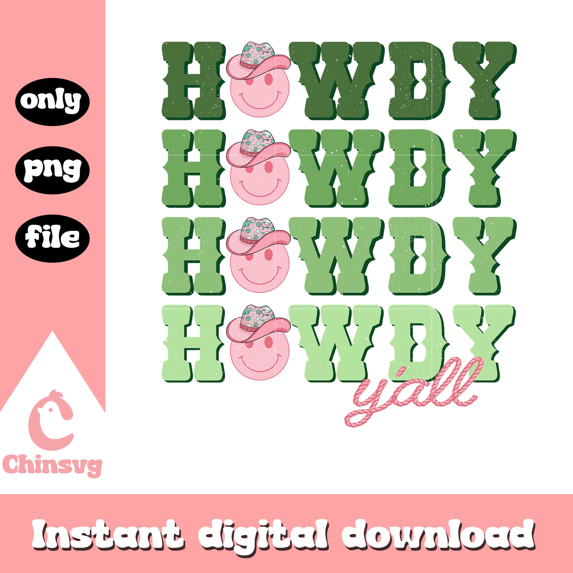 Howdy y'all smiley emoji cowboy png is a product of our St patrick's day collection. Packed with festive designs, this collection features lucky clovers, leprechauns, rainbows, hats, mugs of beer, and all things green and gold. Perfect for crafting custom decorations, apparel, and gifts, these high-quality files are ideal for adding a touch of Irish cheer to your creative projects.