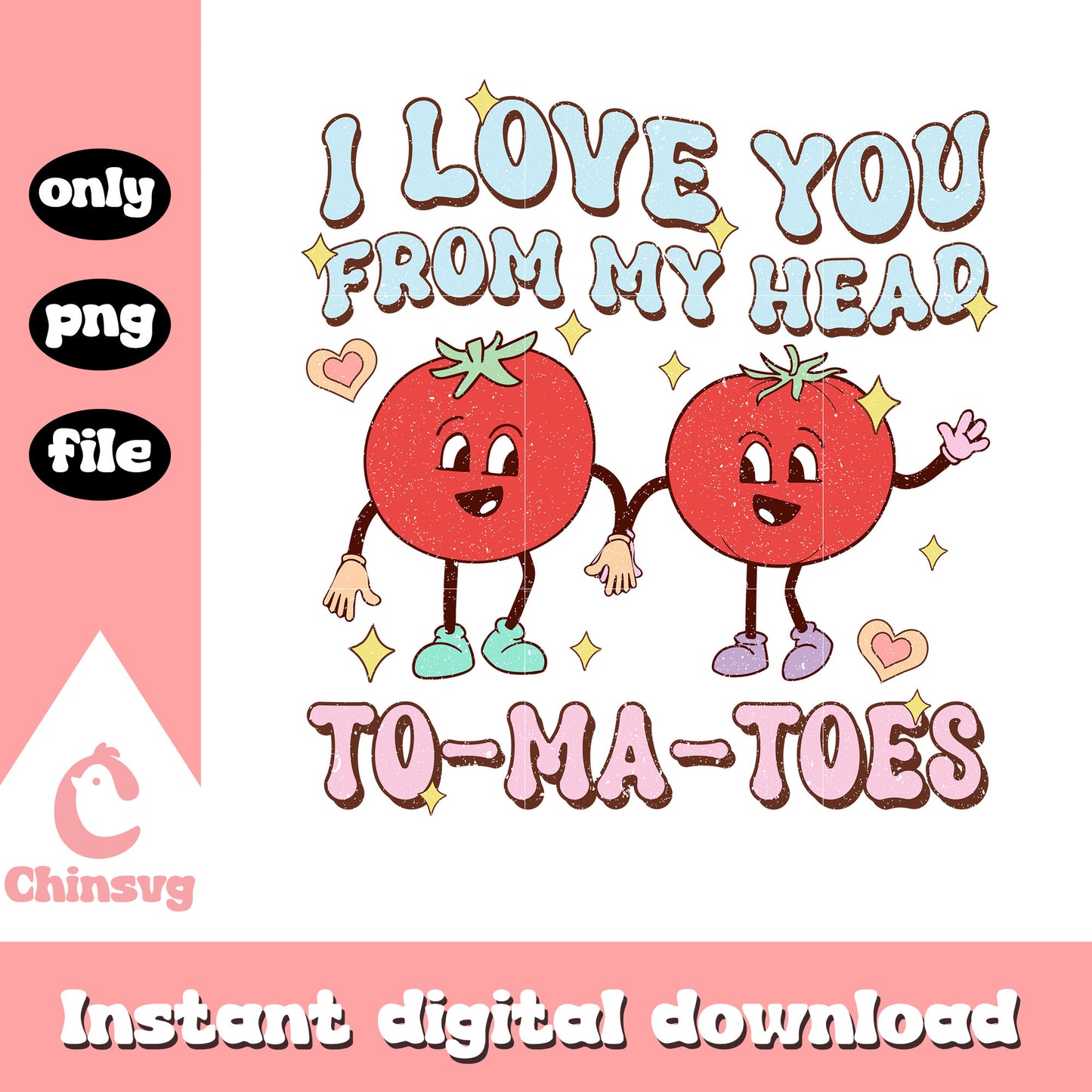 I love you from my head tomatoes png is a product of our Valentine collection. Whether you’re crafting personalized gifts, romantic cards, or decorating for a special day, this collection is filled with beautiful designs that capture the spirit of Valentine’s Day. Featuring hearts, roses, Cupid, love quotes, and more, these high-quality files will inspire your creativity and help you make something truly unforgettable for your loved ones.