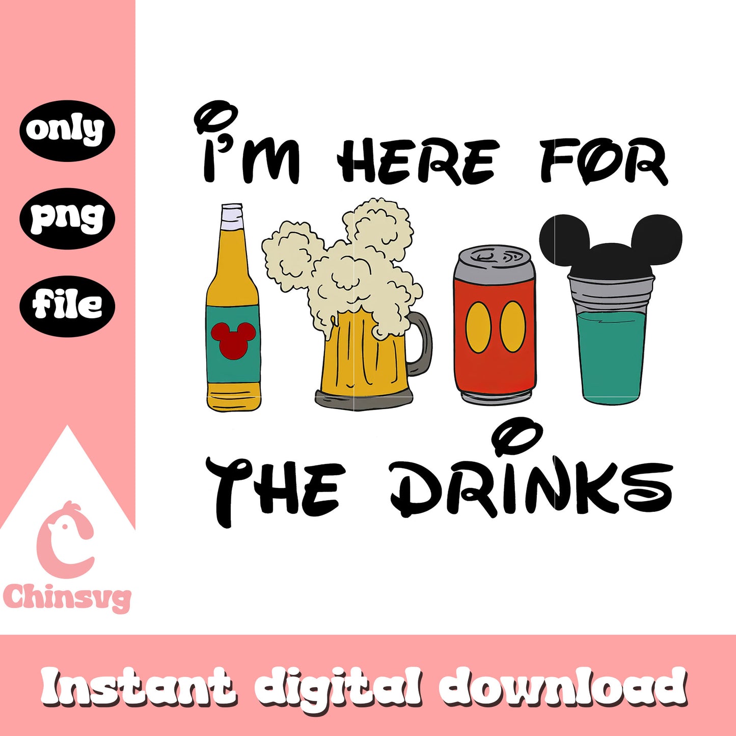 I'm here for the drinks png is a product of our Disney collection. Perfect for Disney fans of all ages, this collection captures the charm and nostalgia of your favorite characters and magical worlds. Featuring a range of beloved characters, castles, magical icons, and whimsical designs, these files are ideal for creating everything from custom apparel to party decorations and personalized gifts.