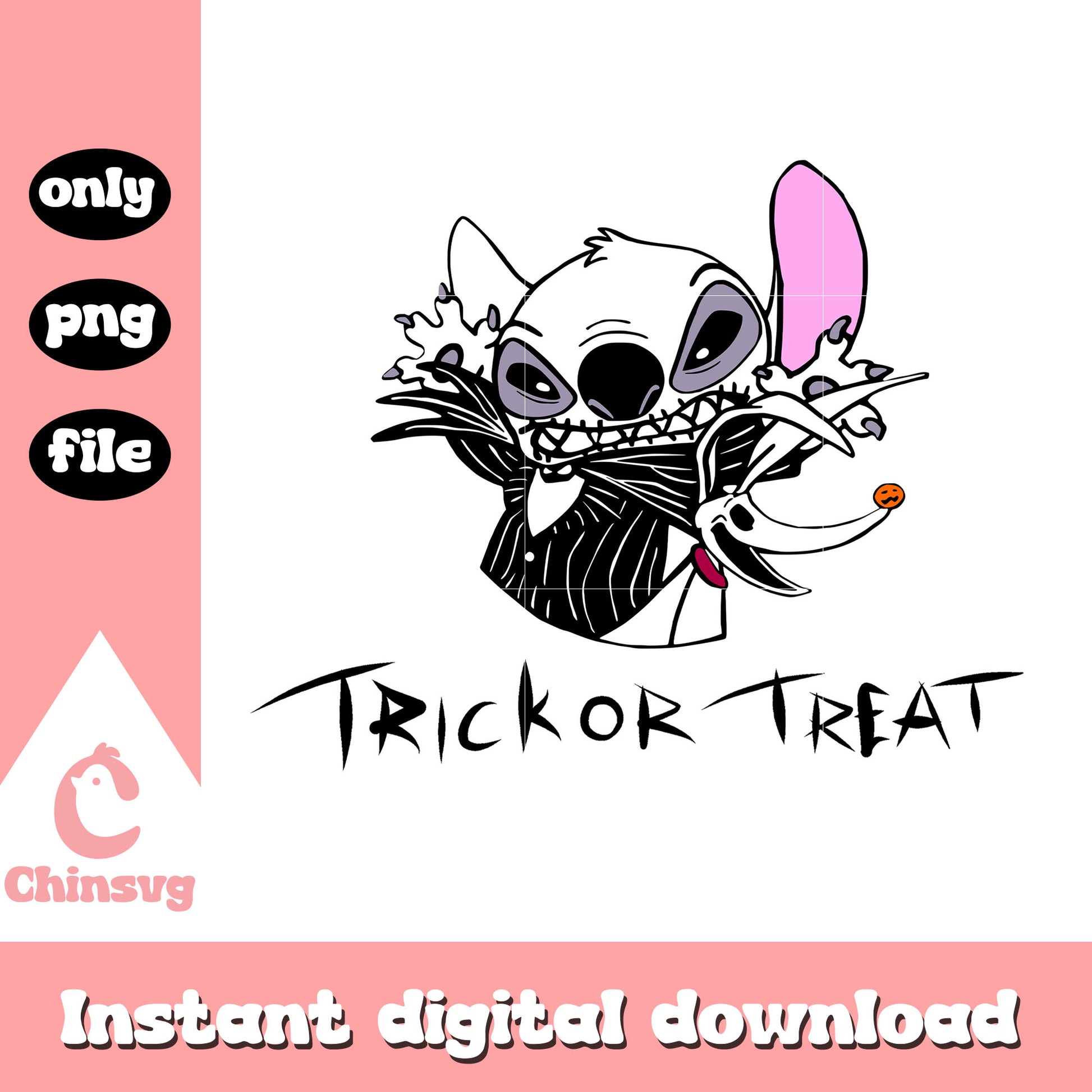 Jack stitch trick or treat png is a product of our Halloween collection. Whether you're crafting spooky decorations, designing party invitations, or creating unique apparel, this collection is packed with high-quality, detailed graphics that perfectly capture the spirit of Halloween. From pumpkins, ghosts, bats, to witches, skeletons, and more, this set offers endless possibilities for your creative ideas.