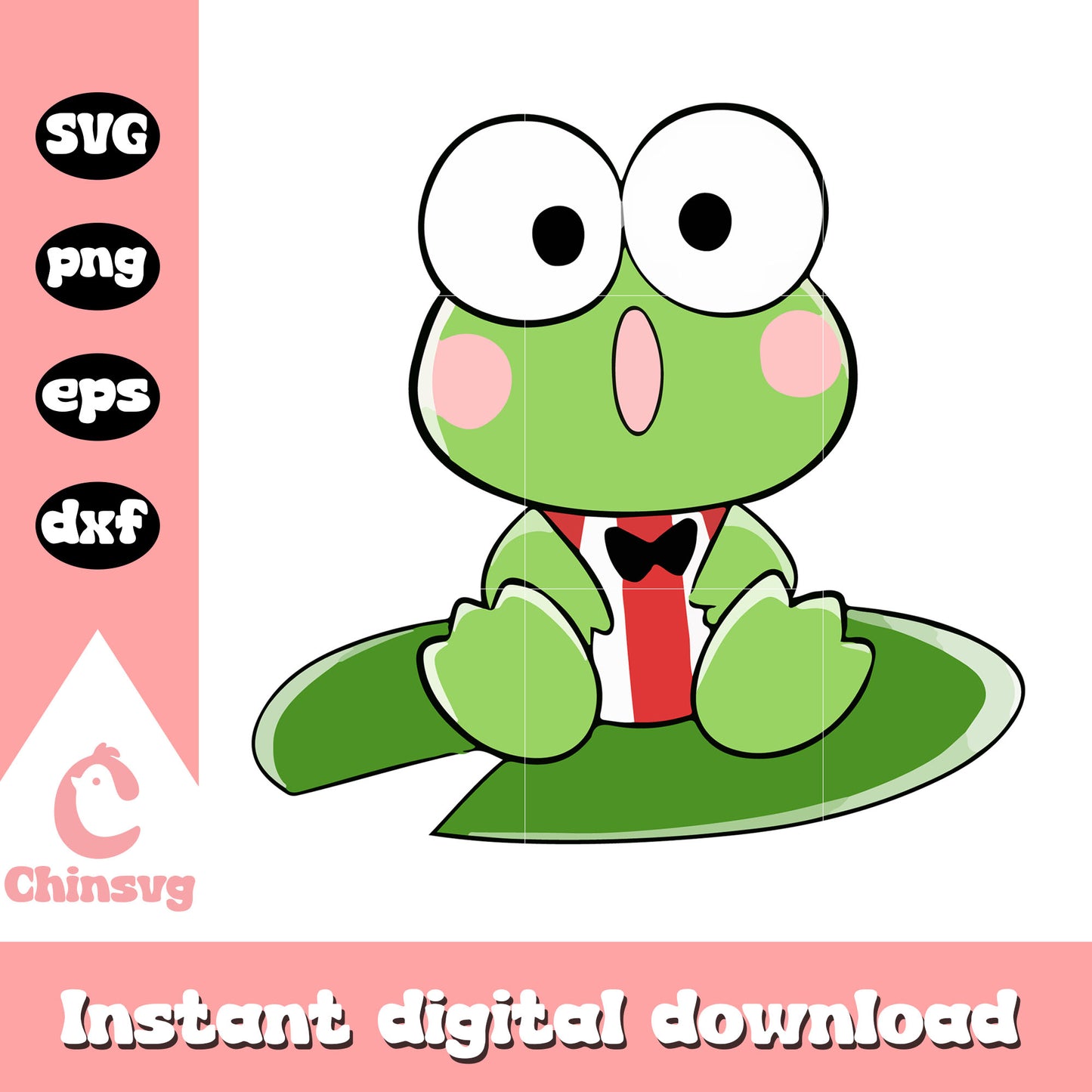 Keroppi sittng on lotus leaf design svg, keroppi frog svg