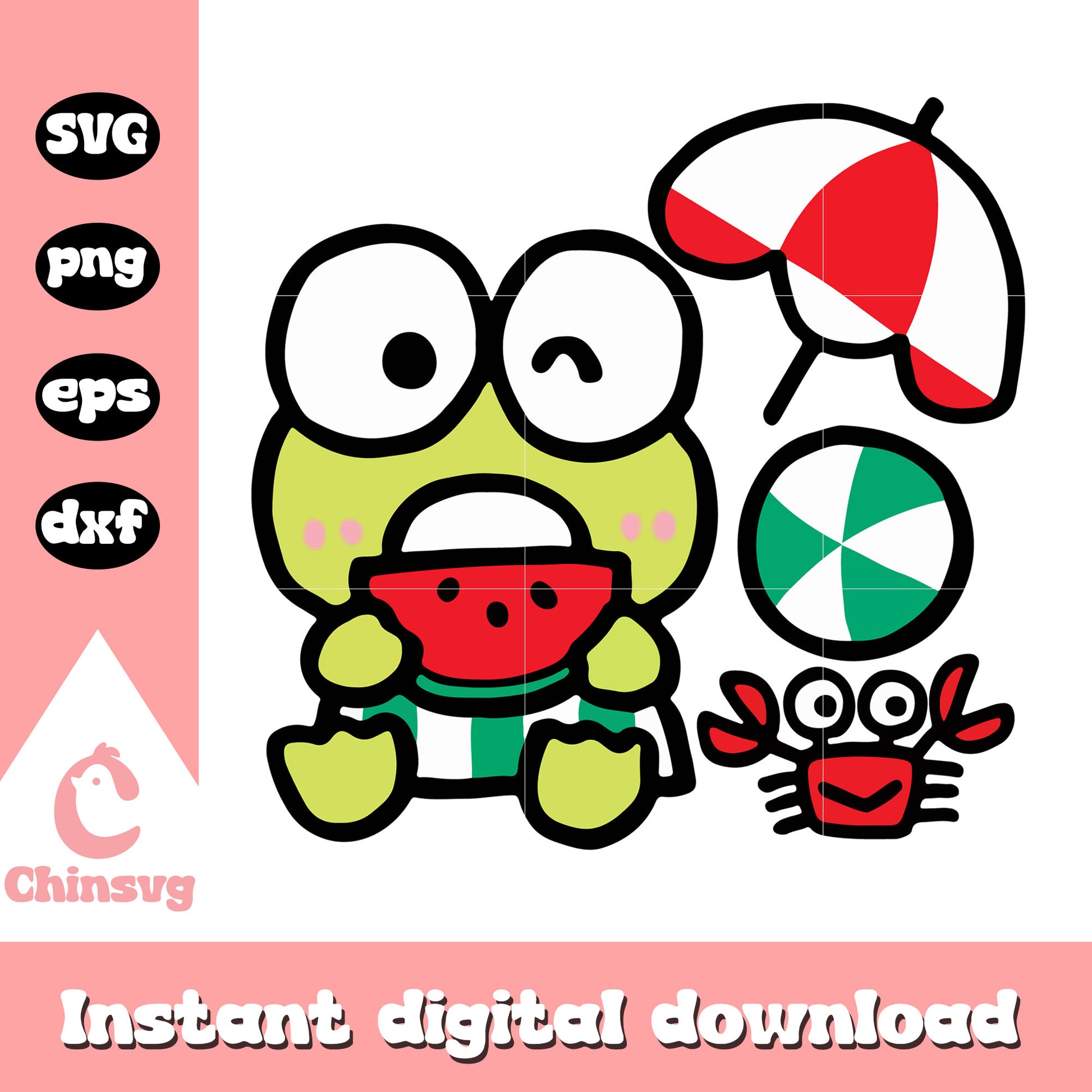 Keroppi summer svg, keroppi svg, sanrio hello kitty svg