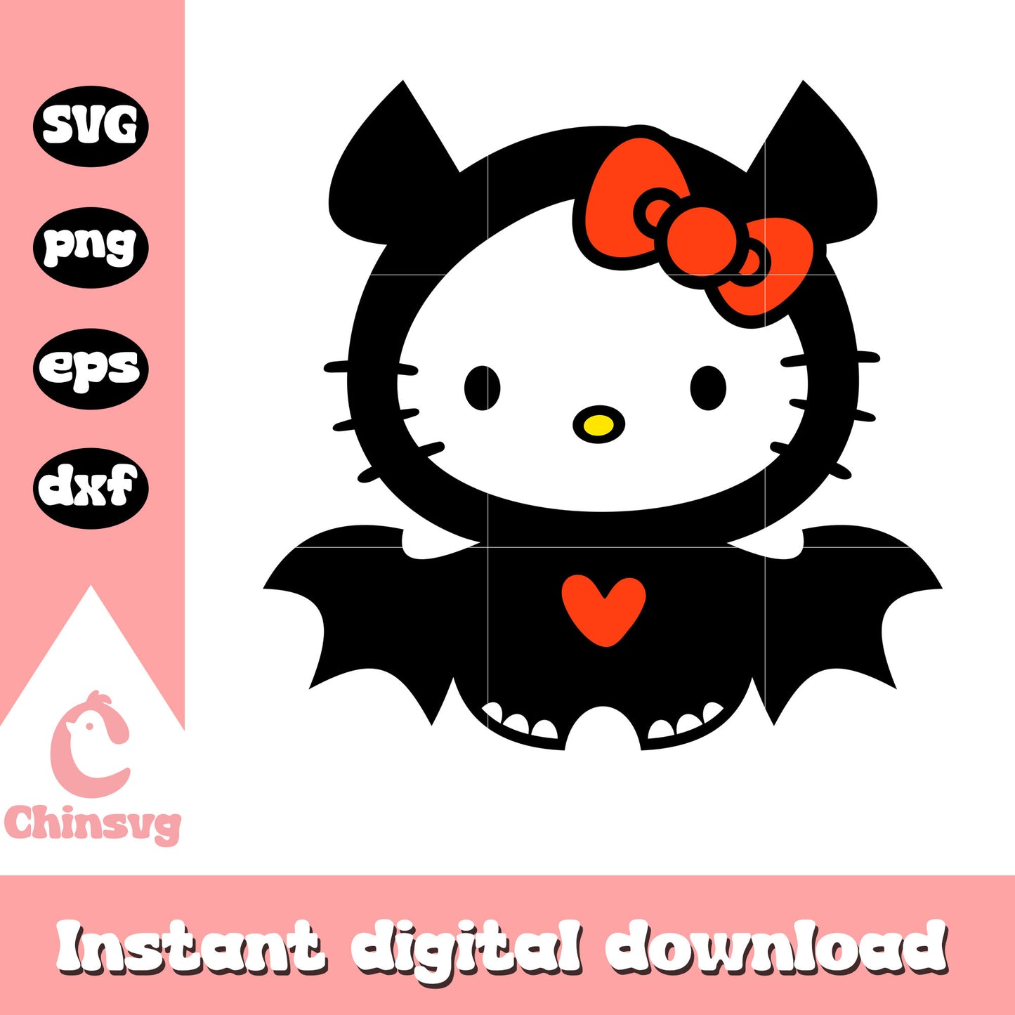 Kitty bat halloween design svg is a product of our hello kitty collection. Featuring the beloved character and her charming world, this collection is perfect for fans, crafters, and designers of all ages. Whether you're creating party decorations, custom gifts, or digital artwork, these high-quality designs will make every project extra cute and memorable.