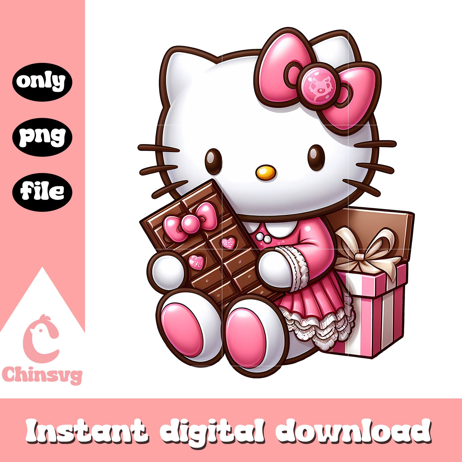 Kitty cat chocolate valentine day png, valentine png, sanrio png