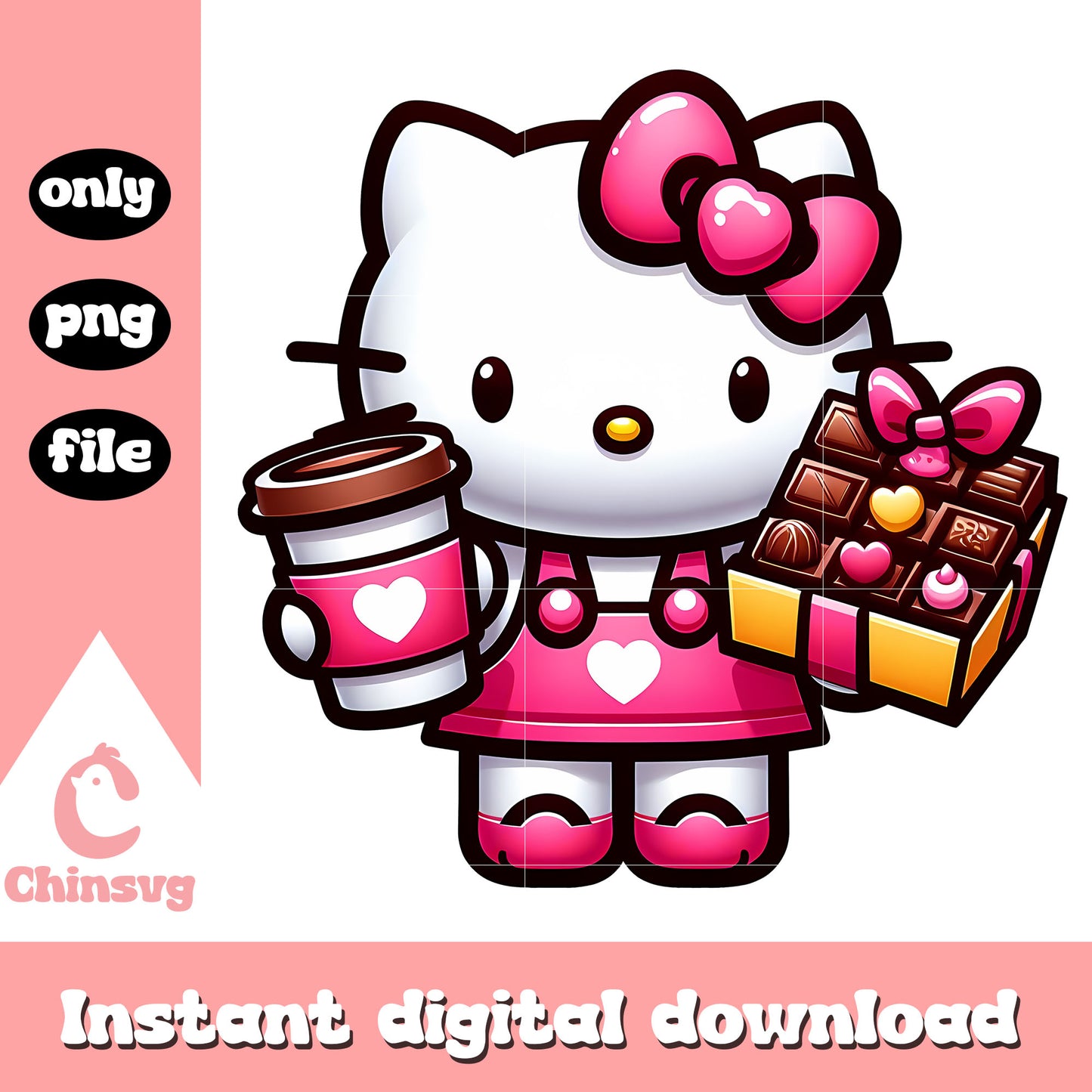 Kitty cat coffee and chocolate png, valentine png, love coffee png