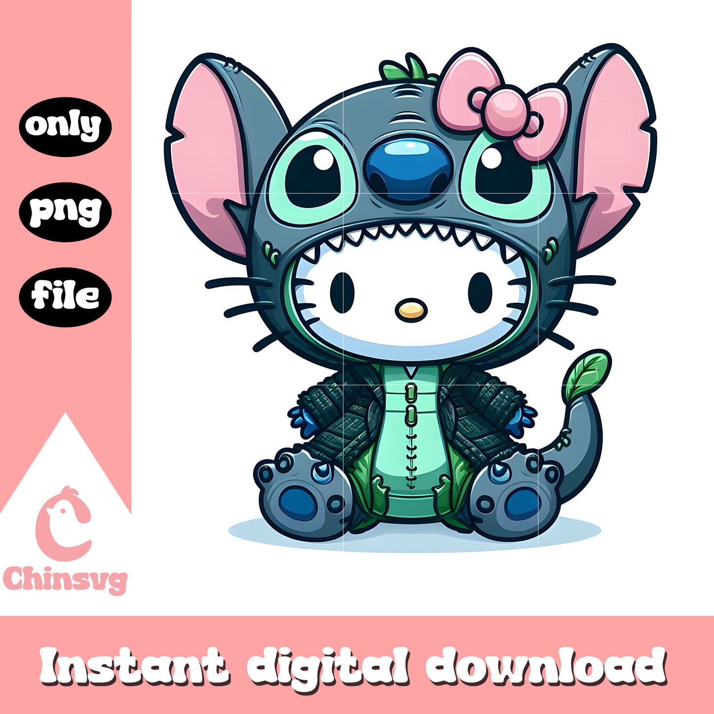 Kitty cat cosplay green stitch png, hello kitty halloween png