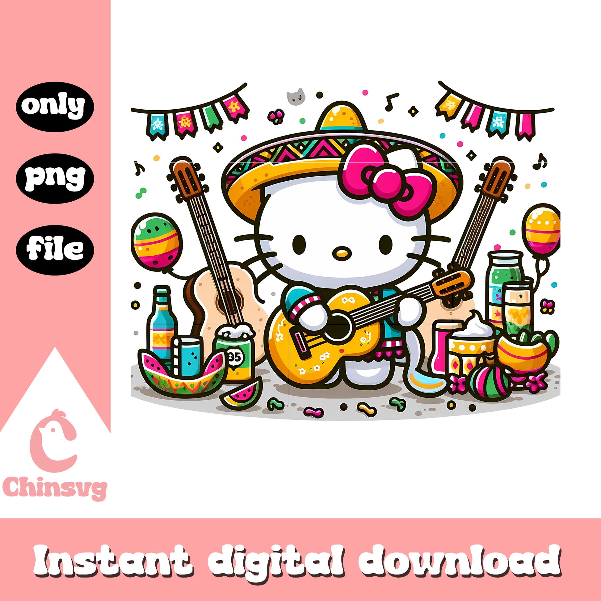 Kitty mexico festival play guitar png is a product of our hello kitty collection. Featuring the beloved character and her charming world, this collection is perfect for fans, crafters, and designers of all ages. Whether you're creating party decorations, custom gifts, or digital artwork, these high-quality designs will make every project extra cute and memorable.