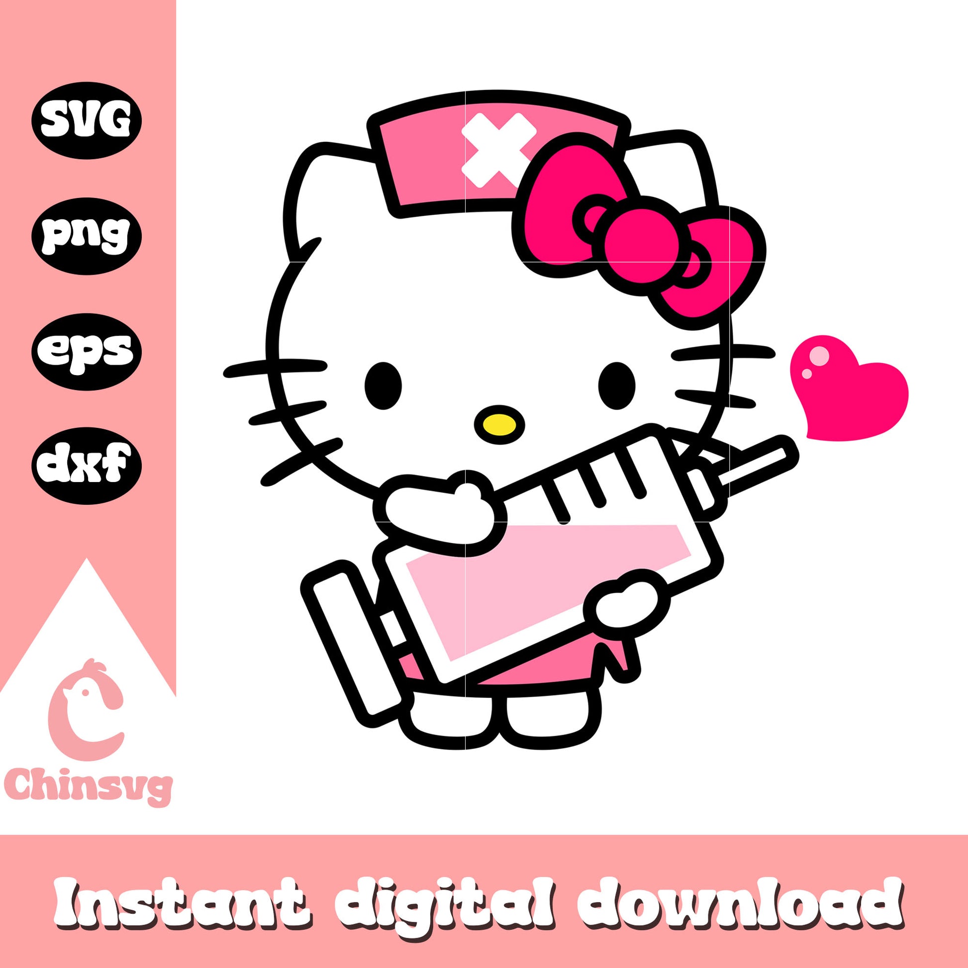 Kitty nurse cute svg is a product of our hello kitty collection. Featuring the beloved character and her charming world, this collection is perfect for fans, crafters, and designers of all ages. Whether you're creating party decorations, custom gifts, or digital artwork, these high-quality designs will make every project extra cute and memorable.