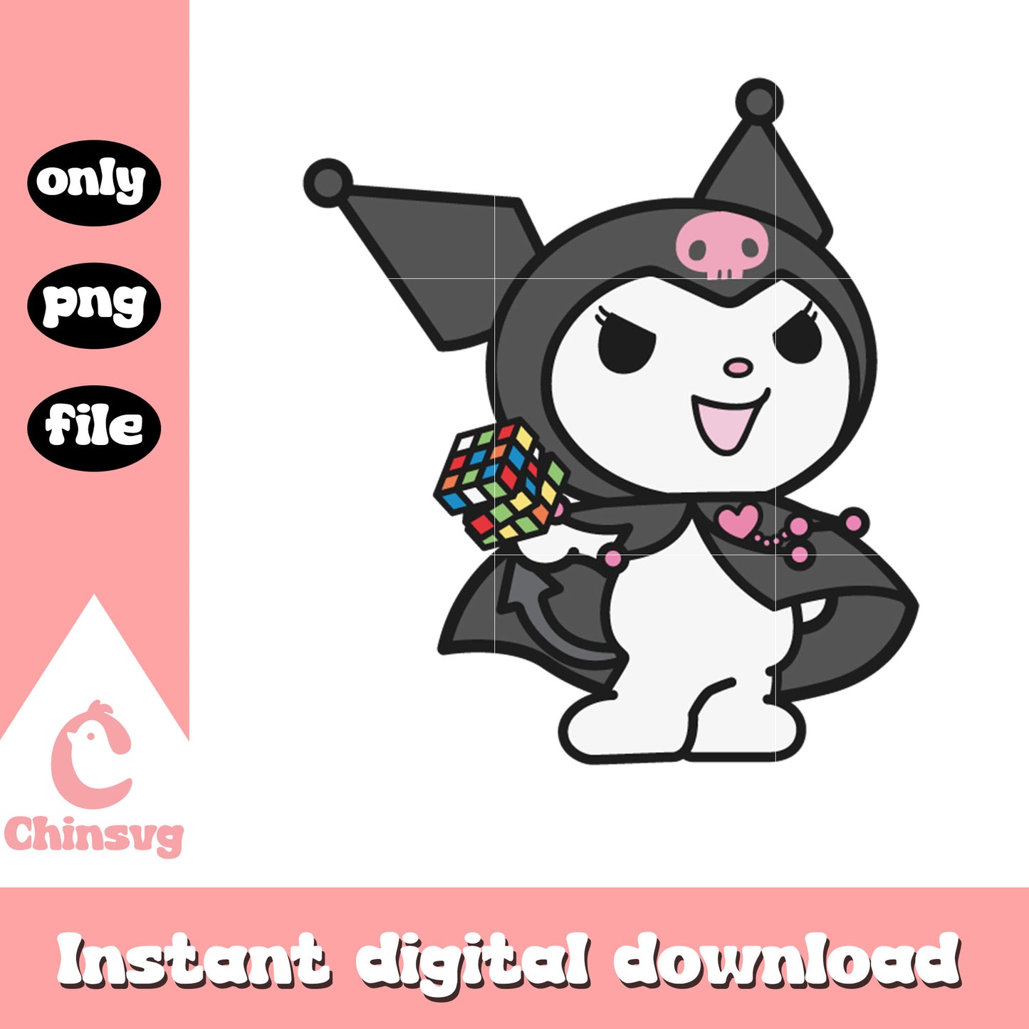Kuromi cartoon and rubik png is a product of our hello kitty collection. Featuring the beloved character and her charming world, this collection is perfect for fans, crafters, and designers of all ages. Whether you're creating party decorations, custom gifts, or digital artwork, these high-quality designs will make every project extra cute and memorable.
