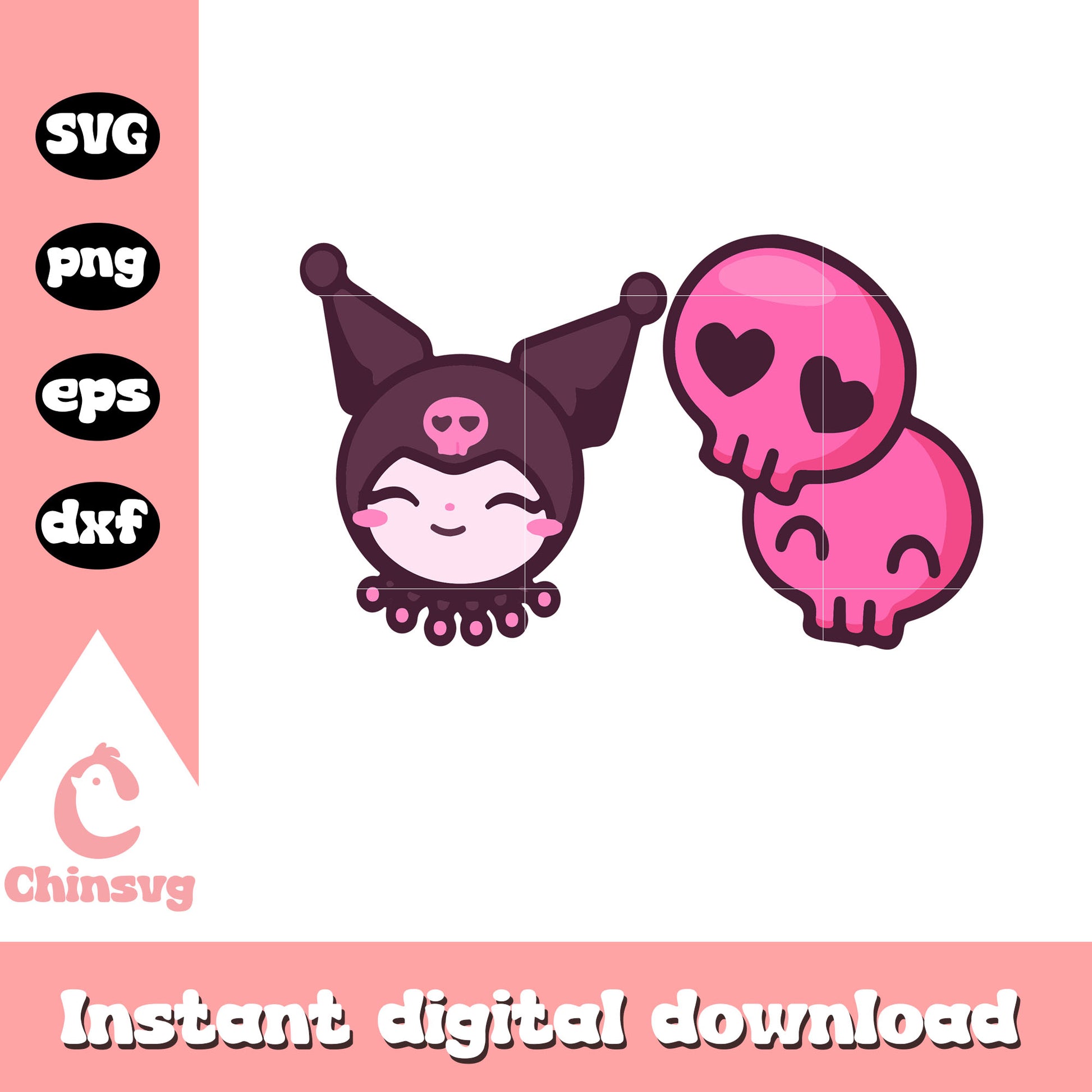 Kuromi chibi face svg, kuromi hello kitty svg, kuromi sanrio svg
