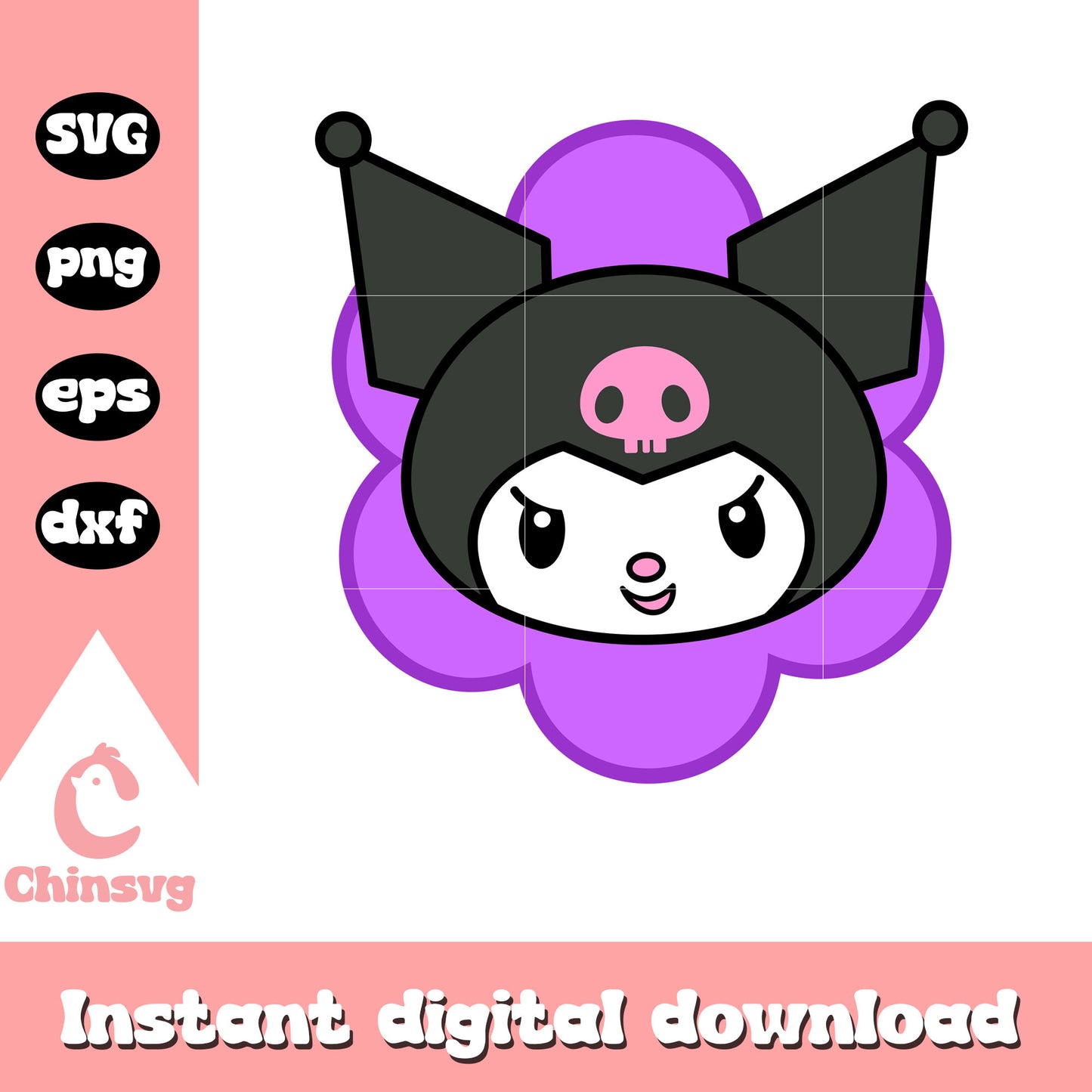 Kuromi face flower svg, sanrio hello kitty svg, sanrio cartoon svg